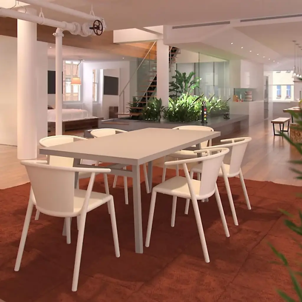 Introduce the Steely Armchair - Set of 4 into your living space, be it a living room, bedroom, or office for a modern, utilitarian appeal. As a versatile piece, this armchair blends effortlessly with different decoration styles. This accent chair, designed and manufactured by Resol in Spain, is crafted from robust polypropylene, offering longevity. Despite its lightweight construction, this lounge chair is weather-resistant, suitable for both indoor and outdoor settings, making it a crucial addition to garden, terrace, balcony, or dining room.