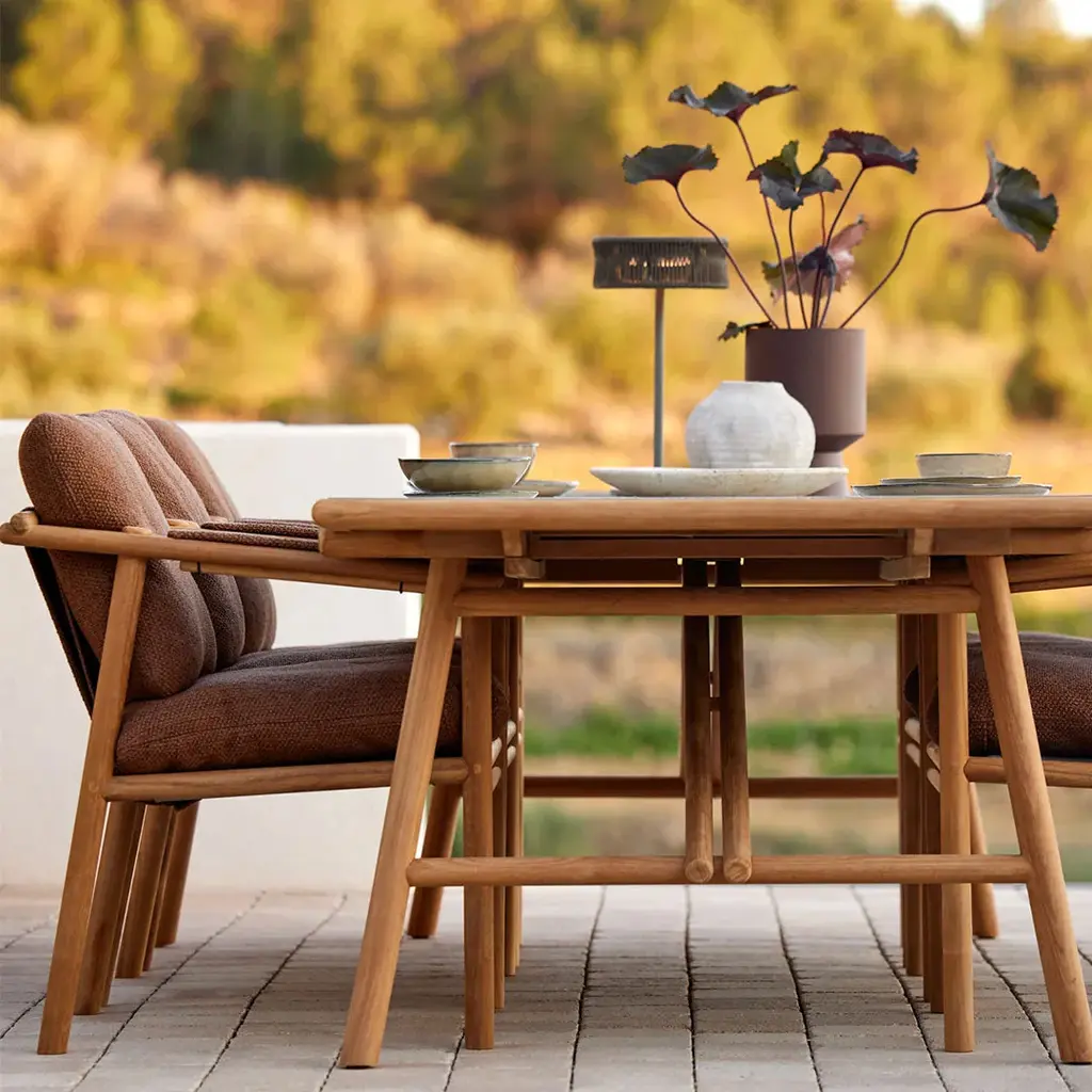 The Sticks armchair from the Sticks series seamlessly combines charm and modern design. Drawing inspiration from sticks, its durable construction ensures a perfect balance between relaxation and dining comfort. The cushions add extra comfort and style. Use it with the Sticks Dining table or as you desire.