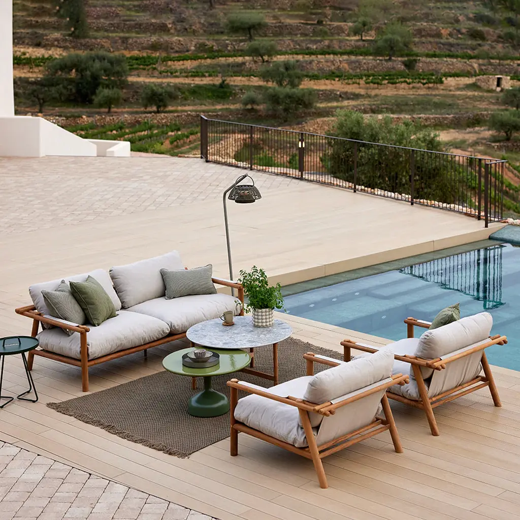 The Sticks armchair from the Sticks series seamlessly combines charm and modern design. Drawing inspiration from sticks, its durable construction ensures a perfect balance between relaxation and dining comfort. The cushions add extra comfort and style. Use it with the Sticks Dining table or as you desire.