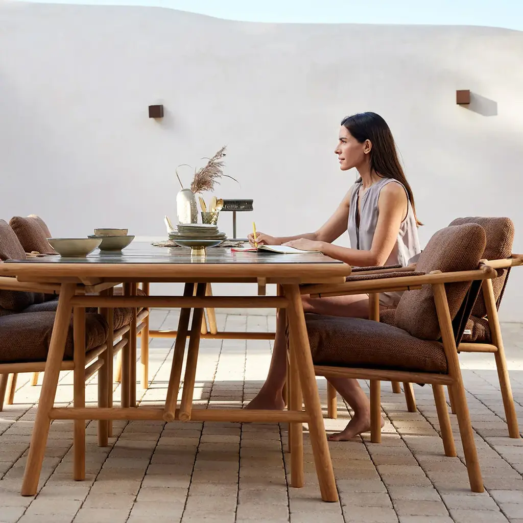 The Sticks armchair from the Sticks series seamlessly combines charm and modern design. Drawing inspiration from sticks, its durable construction ensures a perfect balance between relaxation and dining comfort. The cushions add extra comfort and style. Use it with the Sticks Dining table or as you desire.