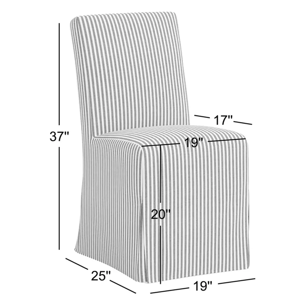 This Parsons side chair adds a classic touch to your dining room with its timeless design and elegant pleated skirt. Crafted from a blend of solid and engineered wood, it offers a sturdy frame wrapped in soft cotton fabric for a cozy, textured feel. The chair's solid back and foam filling provide the support you need for leisurely meals or long conversations. Plastic glides on the legs help protect your floors from scuffs and scrapes. With a variety of fabric patterns to choose from, you can easily customize your dining space to reflect your personal style.