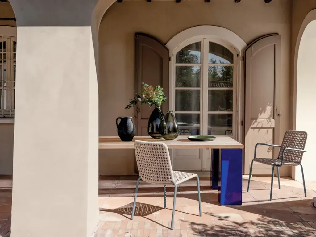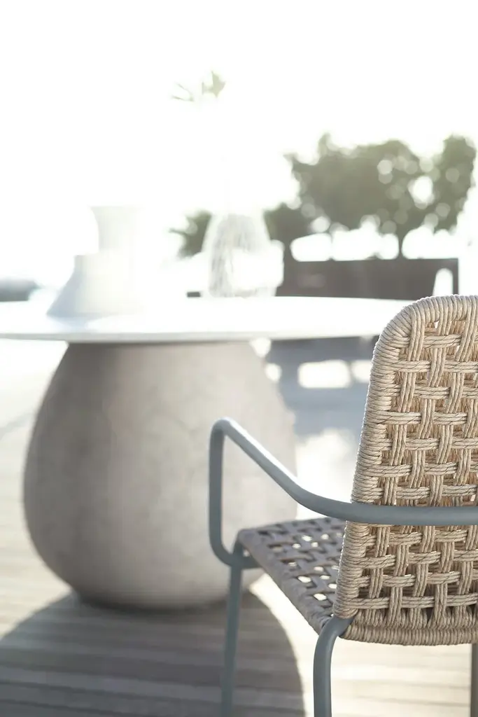 Straw 24 is the dining armchair, light grey lacquered aluminium tubular frame, woven with Straw Resin fiber.The Gervasoni Outdoor collection is the result of a careful selection of natural and technical materials worked with skillful craftsmanship and innovative technologies. The company’s products adapt to different styles of outdoor living, furnishing – with absolute ease, elegance and free customisation – terraces, gardens or swimming pools, from the most urban and contemporary to the most sophisticated or surrounded by nature. Each place has its own unique character that must be respected and enhanced. The key features of the range are, as always, attention to detail, excellent workmanship and in-depth research into materials.