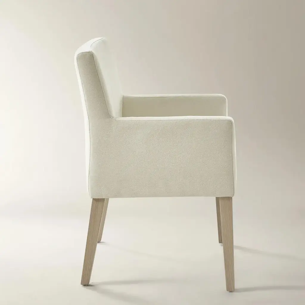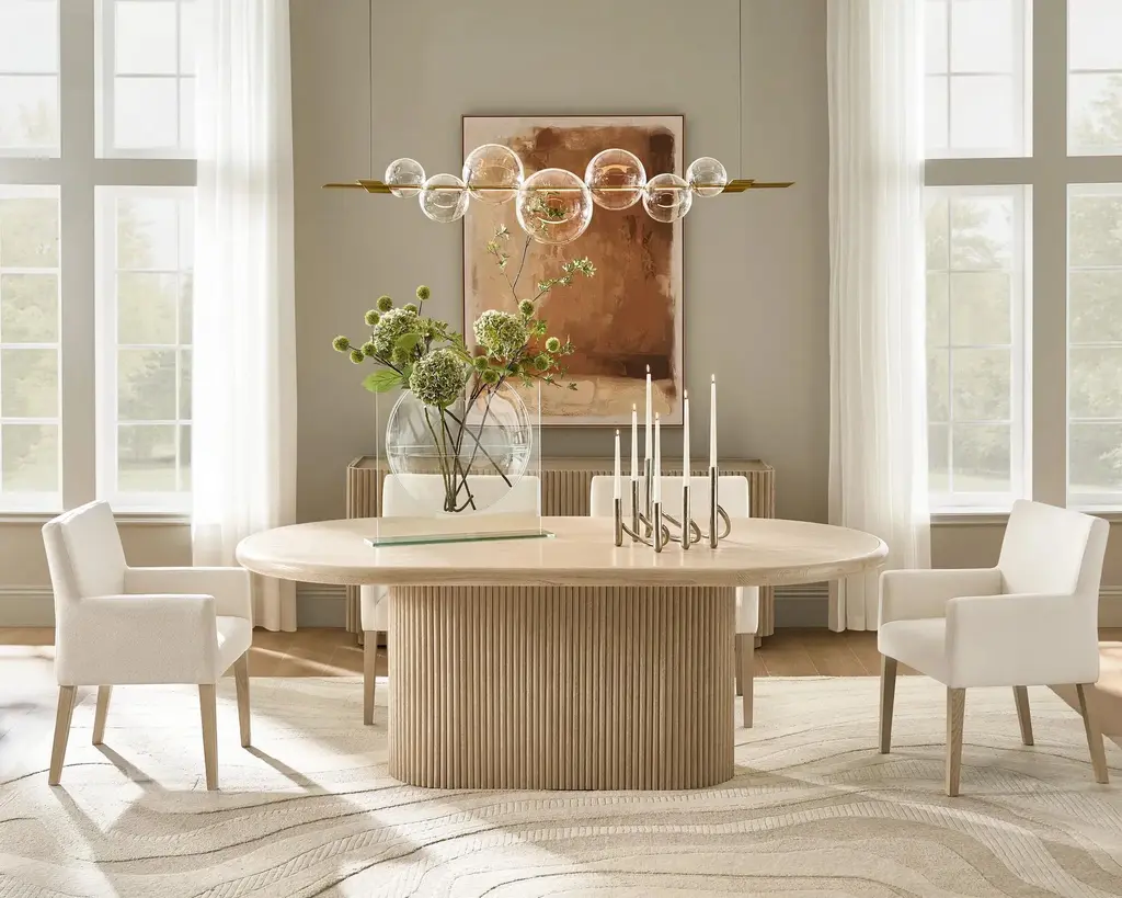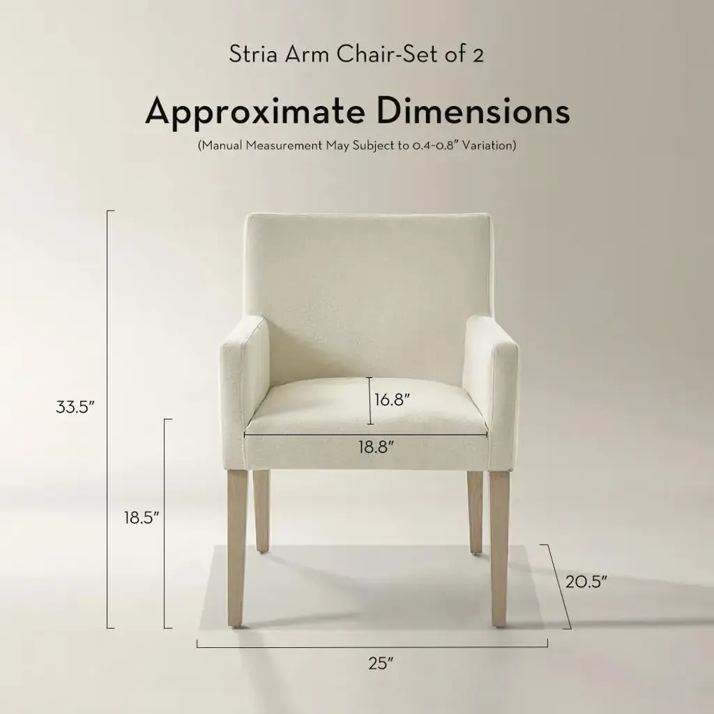 Soft, serene, and endlessly adaptable—the Stria Arm Chairs are the definition of quiet luxury. This pair of upholstered dining chairs features ivory chenille that’s both plush and durable, with natural oak legs that add a hint of warmth. The clean lines and minimalist palette make them ideal for coastal, modern, or transitional dining rooms. Light in color but full of character, they bring subtle sophistication to every seat at the table.ZG Exclusive