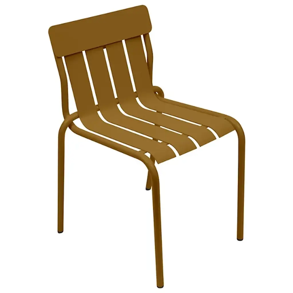 Introducing the Fermob's stylish and contemporary Stripe Side Chair, Set of 2. Crafted with a robust aluminum frame, this chair is designed to be light yet durable, perfect for use across various room types including the hallway, living room, dining room, bedroom and office. Its curved aluminum slat seat and backrest offer unrivaled comfort, while maintaining a sleek, modern appeal. Whether serving as additional seating for guests in the dining room or as a unique touch in your office, the Stripe Side Chair provides an effortless blend of functionality and design.