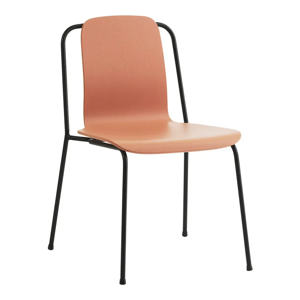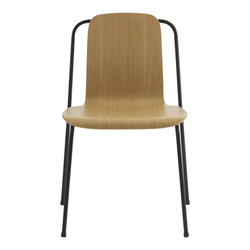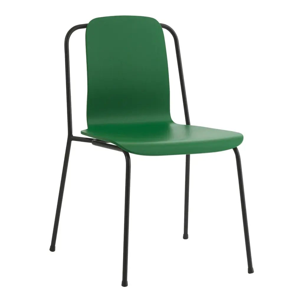 There is something virtually graphic about the way the slender steel frame grows out below the Studio chair's seat and back, framing the molded shell in an airy design. The flowing lines stand out in an eye-catching silhouette, like a line drawing or a pictogram, just as the empty spaces between the frame and the back act to define the shape. The simple construction in veneer and steel tubing directs one's thoughts towards older French factory chairs, giving Studio its industrial notes. A design that attracts attention, but glows with pure simplicity. The multi-purpose Studio chair series is designed for use in both domestic and public spaces. The series includes chairs, armchairs and barstools in two heights. All models are stackable, making the range suitable for restaurants and educational facilities with the need for transformable areas. The steel frame makes it easy to grab hold of the chairs and move them around as required.