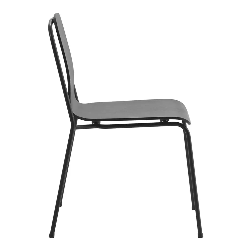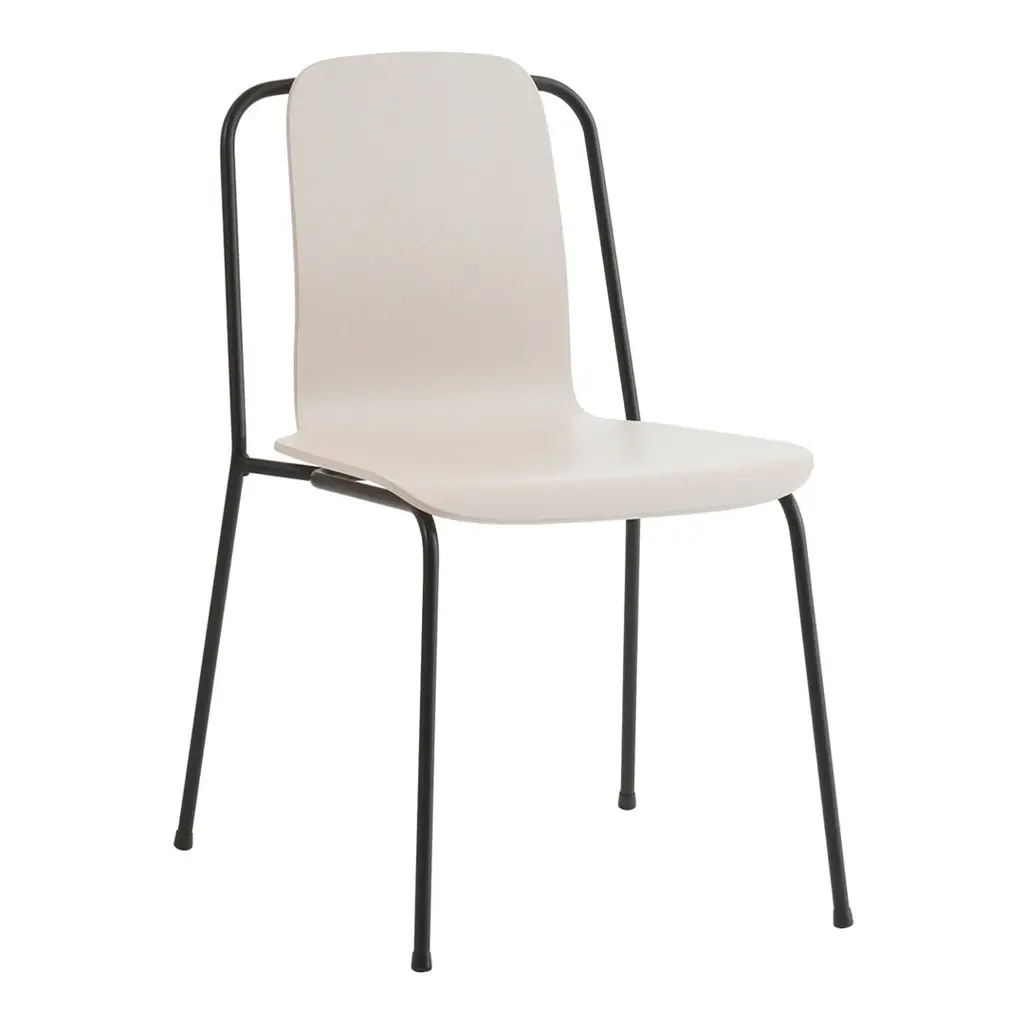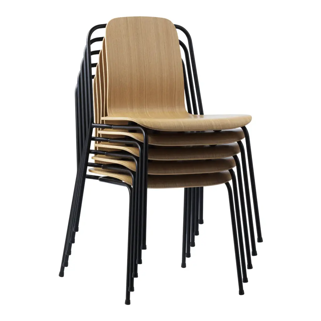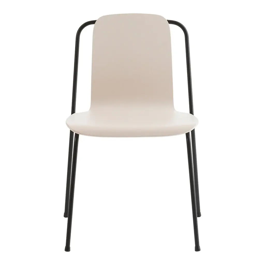 There is something virtually graphic about the way the slender steel frame grows out below the Studio chair's seat and back, framing the molded shell in an airy design. The flowing lines stand out in an eye-catching silhouette, like a line drawing or a pictogram, just as the empty spaces between the frame and the back act to define the shape. The simple construction in veneer and steel tubing directs one's thoughts towards older French factory chairs, giving Studio its industrial notes. A design that attracts attention, but glows with pure simplicity. The multi-purpose Studio chair series is designed for use in both domestic and public spaces. The series includes chairs, armchairs and barstools in two heights. All models are stackable, making the range suitable for restaurants and educational facilities with the need for transformable areas. The steel frame makes it easy to grab hold of the chairs and move them around as required.
