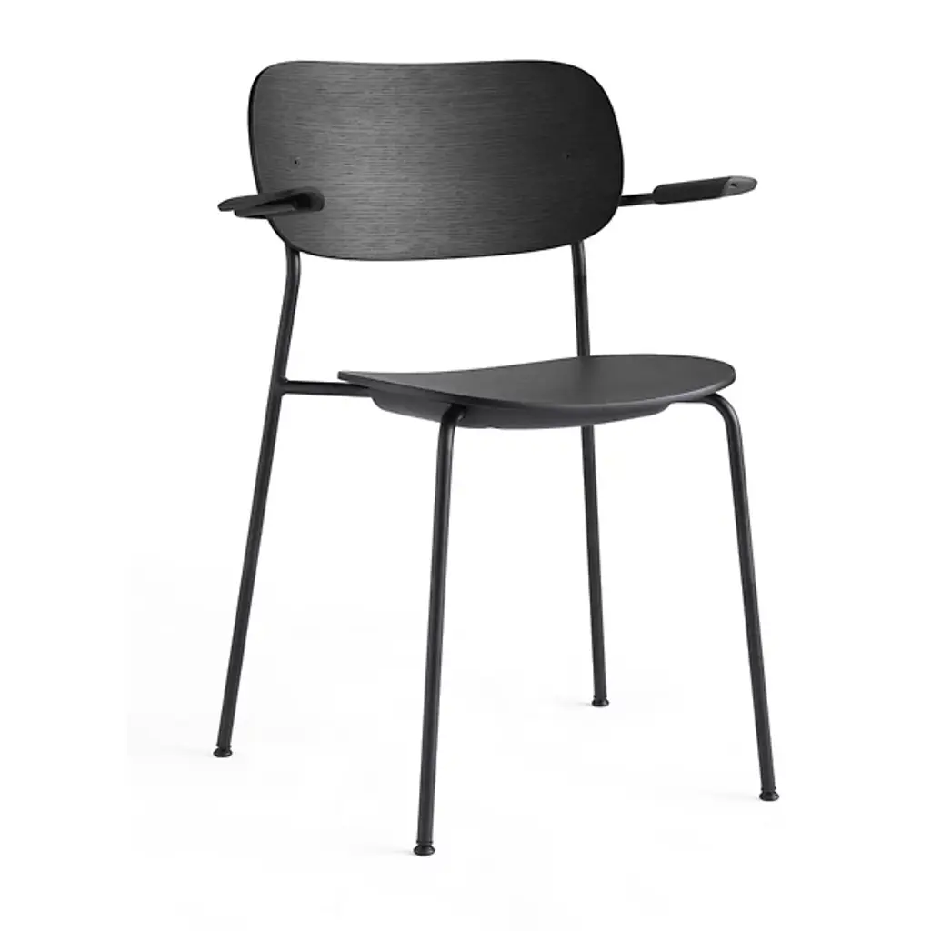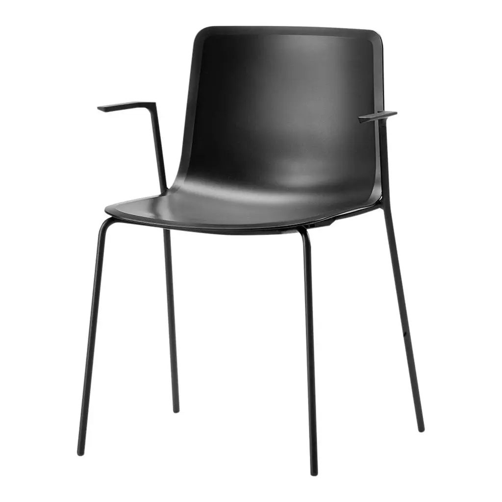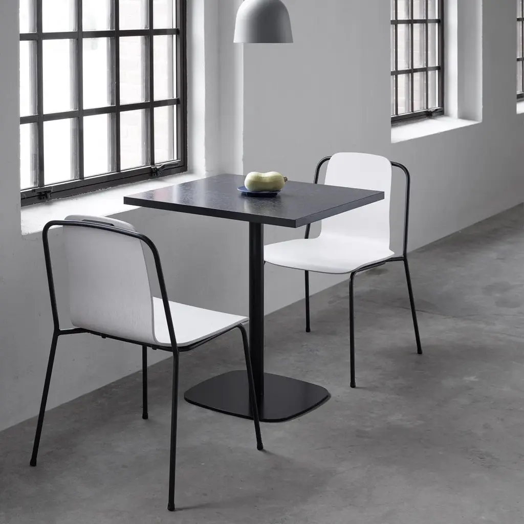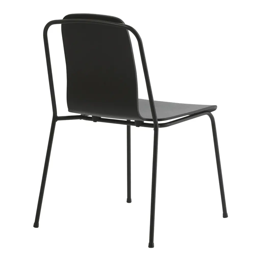 There is something virtually graphic about the way the slender steel frame grows out below the Studio chair's seat and back, framing the molded shell in an airy design. The flowing lines stand out in an eye-catching silhouette, like a line drawing or a pictogram, just as the empty spaces between the frame and the back act to define the shape. The simple construction in veneer and steel tubing directs one's thoughts towards older French factory chairs, giving Studio its industrial notes. A design that attracts attention, but glows with pure simplicity. The multi-purpose Studio chair series is designed for use in both domestic and public spaces. The series includes chairs, armchairs and barstools in two heights. All models are stackable, making the range suitable for restaurants and educational facilities with the need for transformable areas. The steel frame makes it easy to grab hold of the chairs and move them around as required.