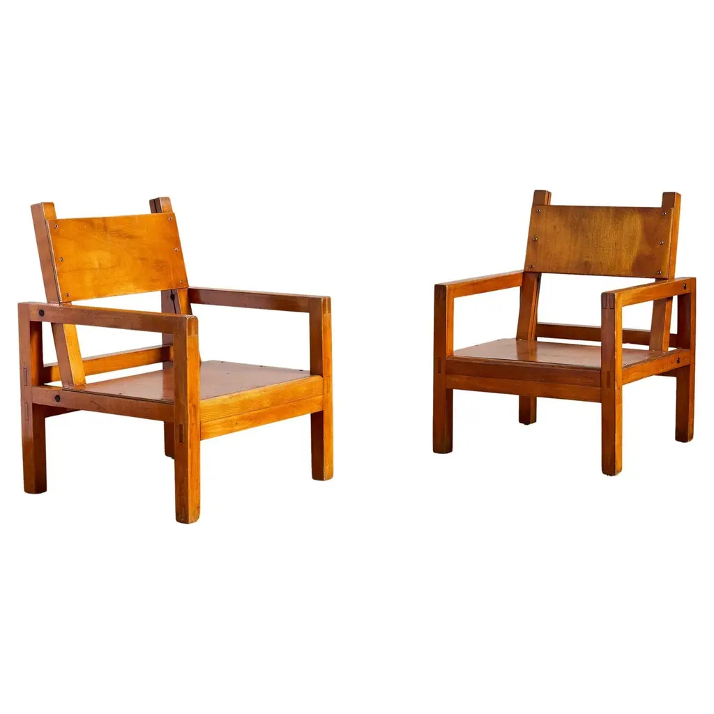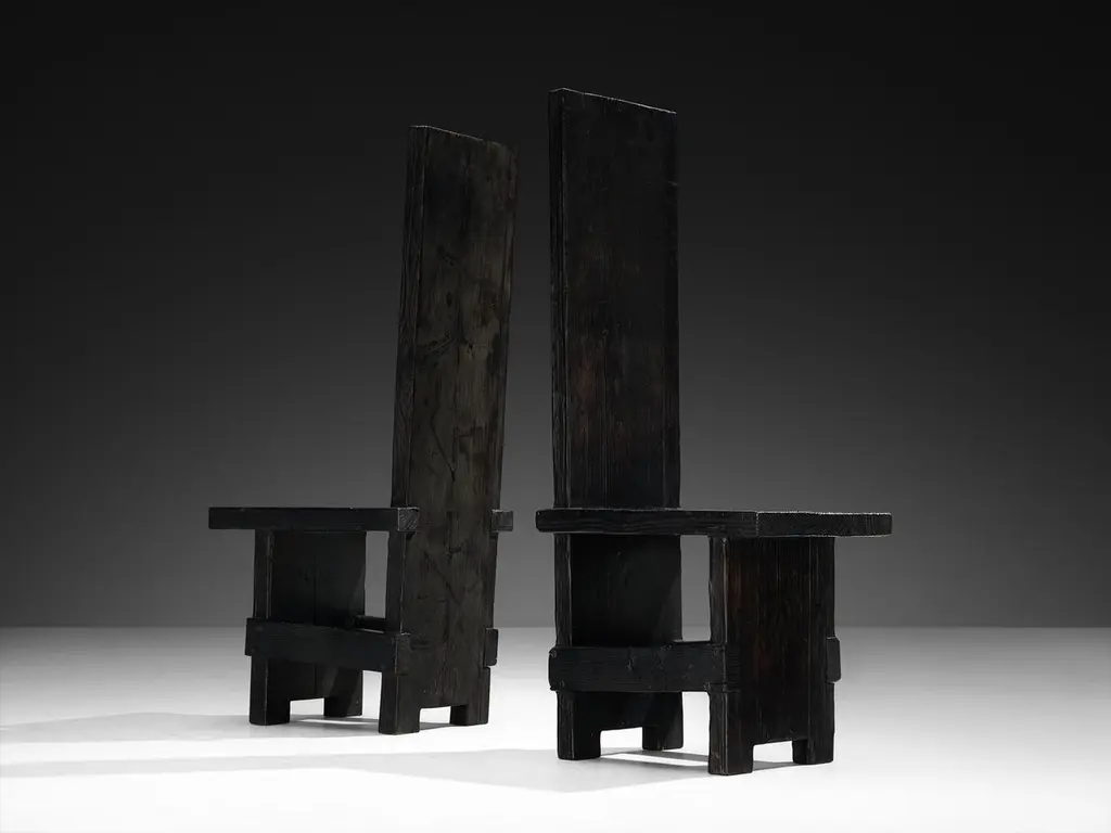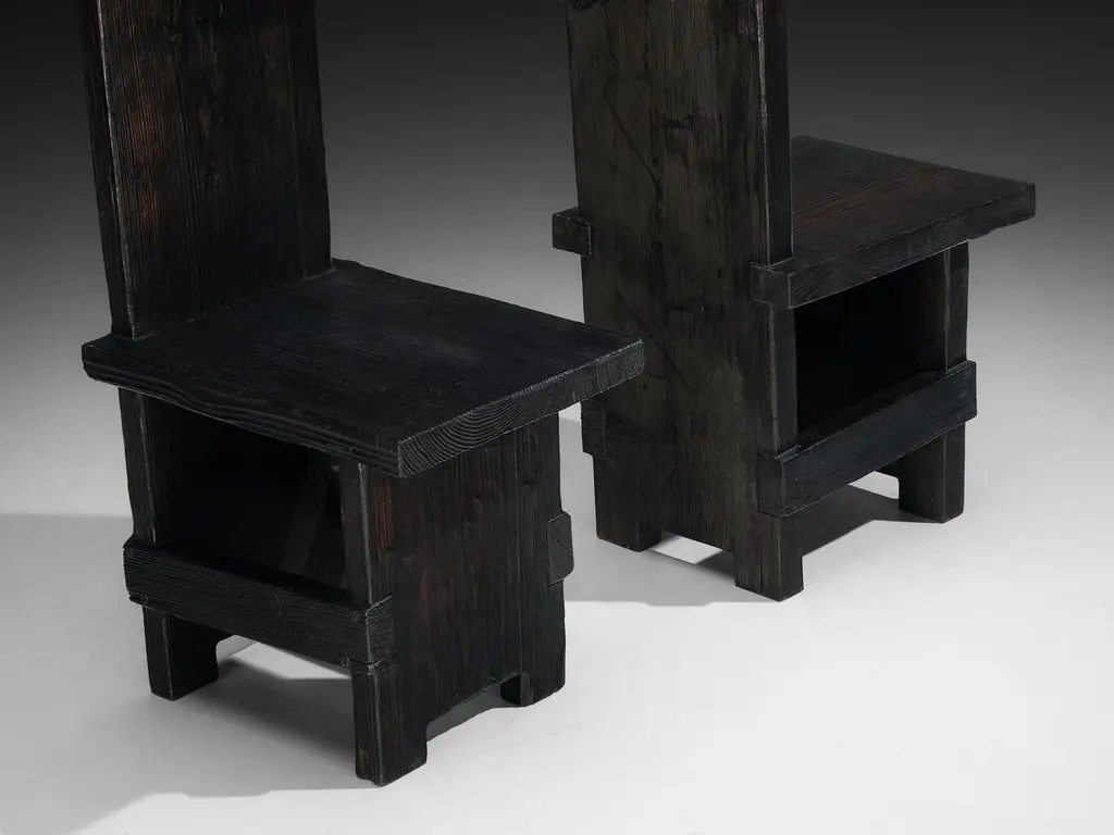 Studio D Italy Brutalist Chairs In Darkened Solid Pine