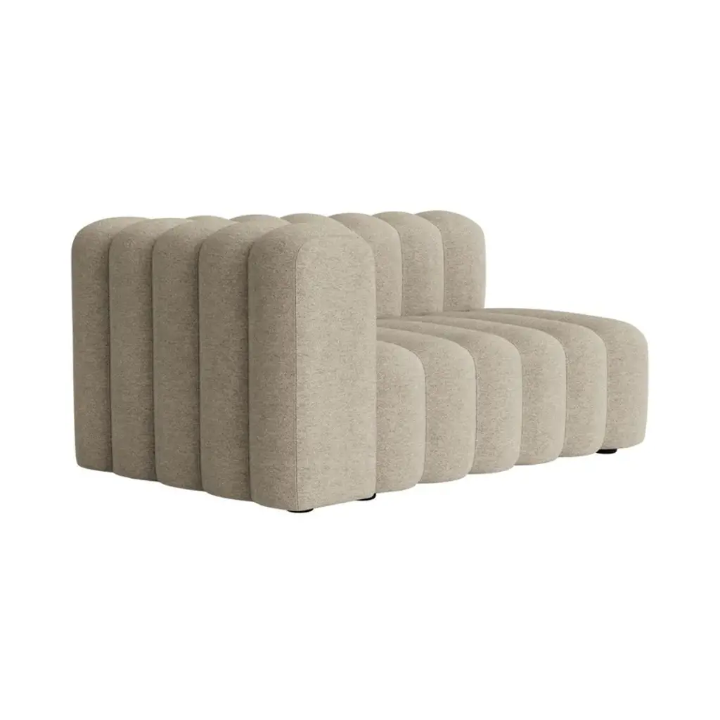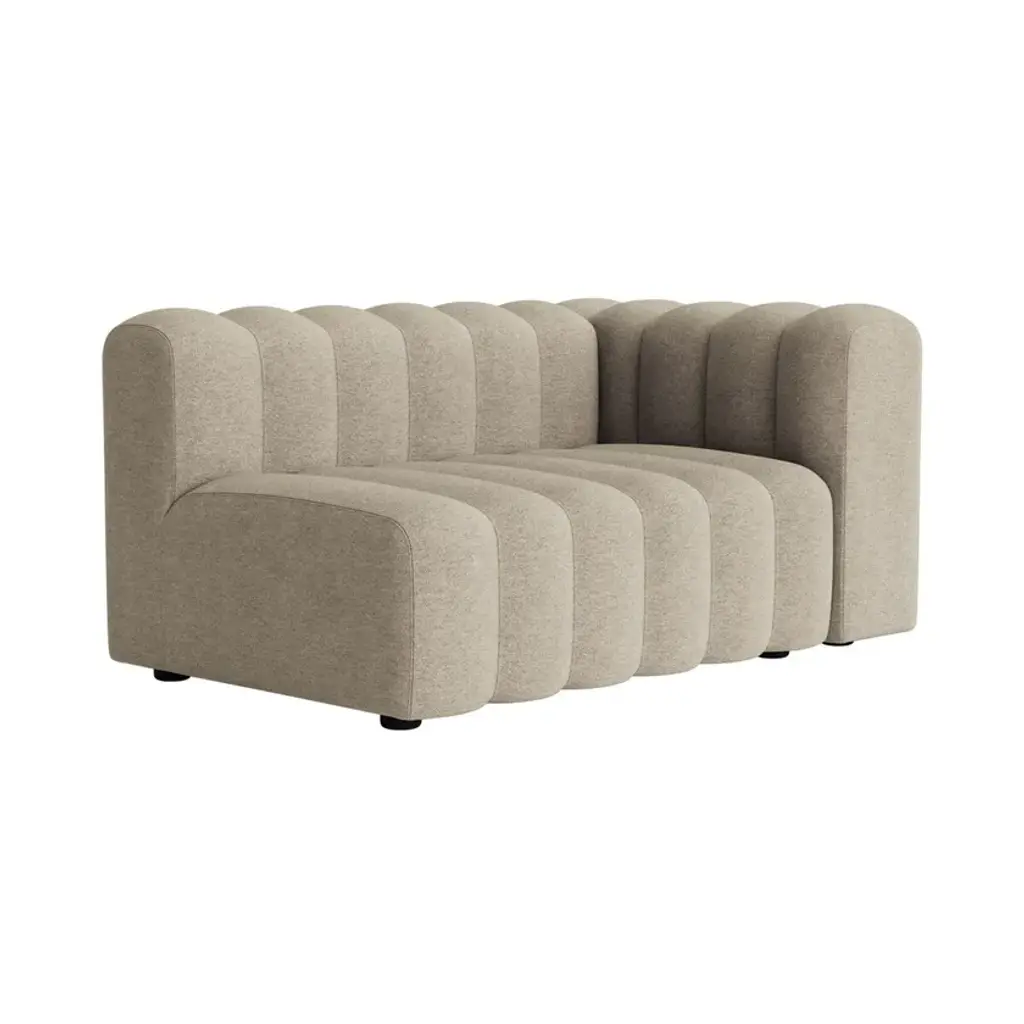 Studio is a fabric armchair.A tribute to a timeless era of the 70s and its expressive aesthetics. Featuring a versatile but simple system of modules, appearing in limitless options to form numerous settings, shapes and styles to adhere to all types of environments, whether for a small living setting or spacious public site, Studio collection is defined by its bold fluted upholstery characteristics inspired by late 70s sofa styles, refined in a contemporary way - giving the series a unique identity. Each module of Studio articulates soft and welcoming lines ideally suited for living, socialising and relaxing where one can feel totally at ease. The armrest cushion is loose and can be moved and repositioned across the series, balancing the fluted upholstery. A plywood structure with elastic belts & foam. 360-degree finish, each module can be a stand-alone. Modules can be reversed to create a two-sided sofa. Click-Link system connects modules. Soft foam mix for ultimate comfort. Available in a wide variety of high-quality eco-fabrics or leather from Sørensen Leather. Made in Italy.