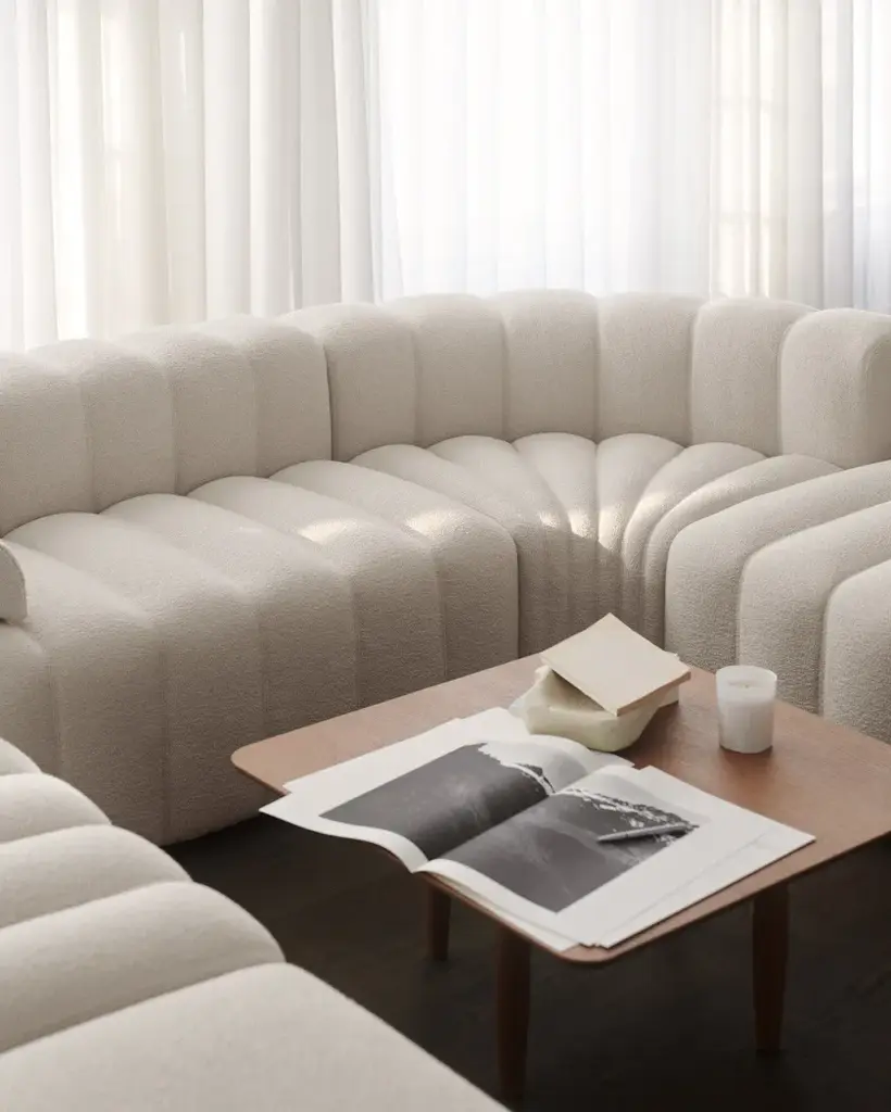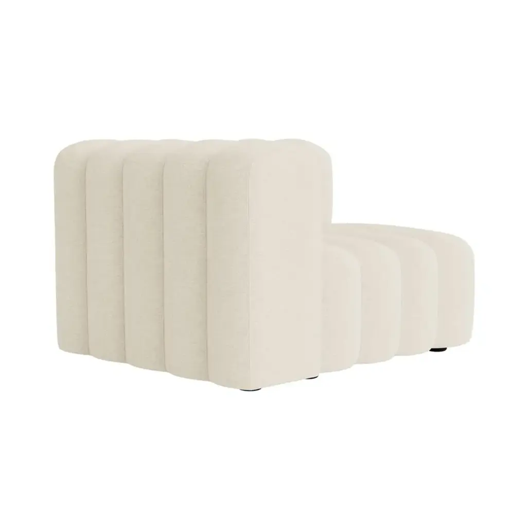 Studio is a fabric armchair.A tribute to a timeless era of the 70s and its expressive aesthetics. Featuring a versatile but simple system of modules, appearing in limitless options to form numerous settings, shapes and styles to adhere to all types of environments, whether for a small living setting or spacious public site, Studio collection is defined by its bold fluted upholstery characteristics inspired by late 70s sofa styles, refined in a contemporary way - giving the series a unique identity. Each module of Studio articulates soft and welcoming lines ideally suited for living, socialising and relaxing where one can feel totally at ease. The armrest cushion is loose and can be moved and repositioned across the series, balancing the fluted upholstery. A plywood structure with elastic belts & foam. 360-degree finish, each module can be a stand-alone. Modules can be reversed to create a two-sided sofa. Click-Link system connects modules. Soft foam mix for ultimate comfort. Available in a wide variety of high-quality eco-fabrics or leather from Sørensen Leather. Made in Italy.