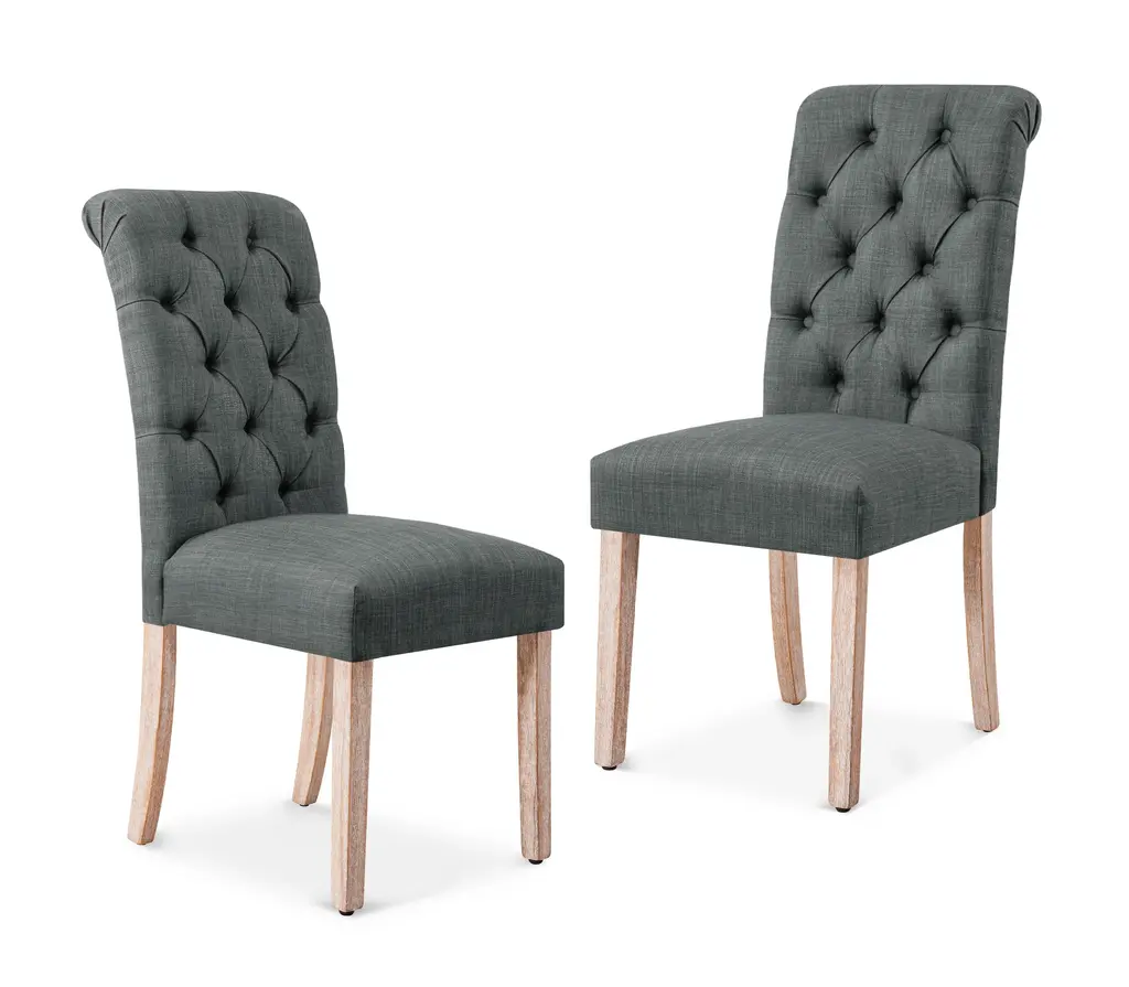 Subrtex Tufted Fabric Upholstered Dining Chairs, Dark Gray, Set Of 2