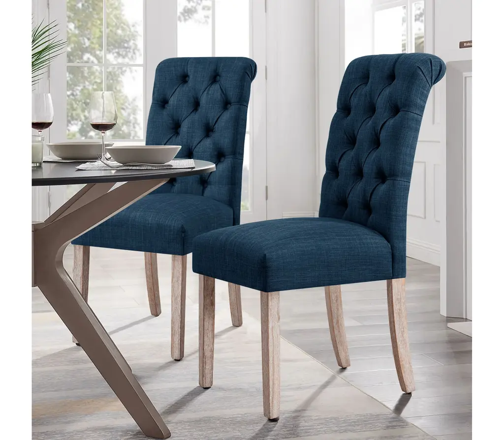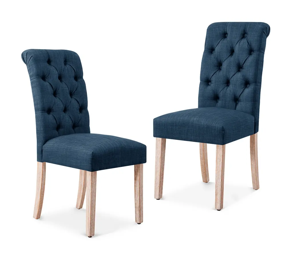 Subrtex Tufted Fabric Upholstered Dining Chairs, Navy, Set Of 2