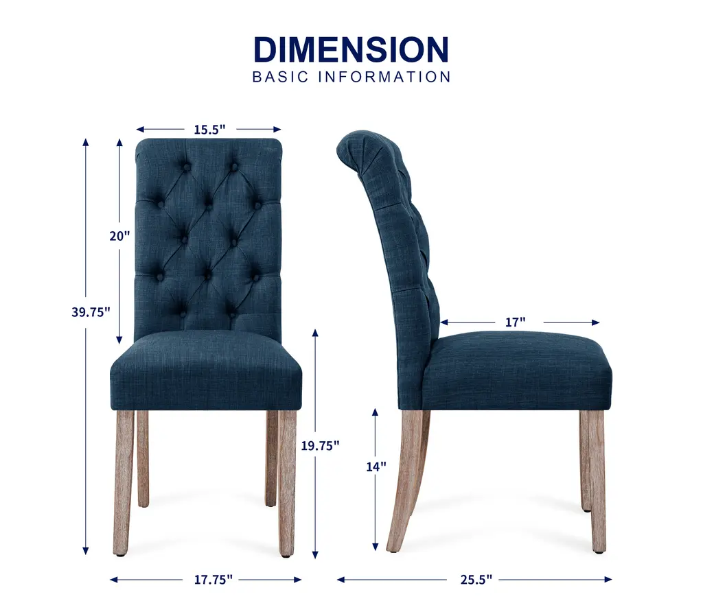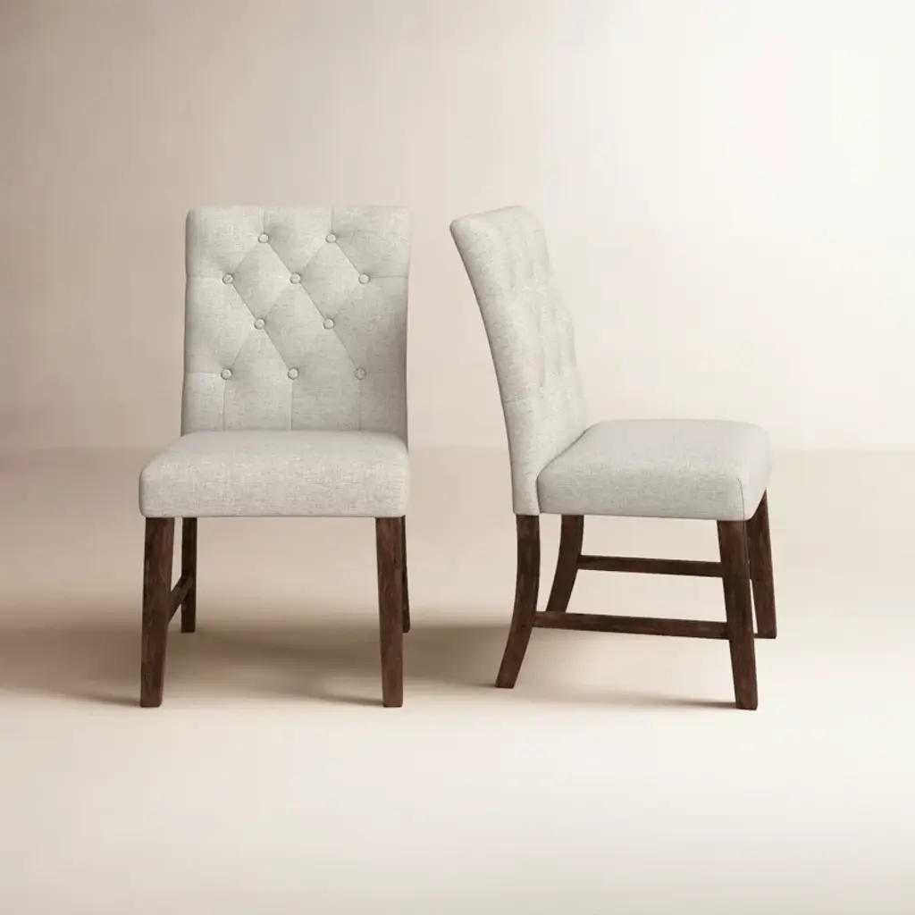 Add elegance and comfort to your dining space with this beautifully upholstered button-tufted dining chair. Enjoy the soft yet supportive foam cushion, perfect for lingering conversations or cozy meals. Available in versatile gray, deep gray, and rich navy, this chair complements any decor style. Enhance your dining area with style and comfort—elevate your home’s ambiance today.
