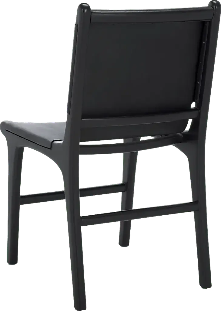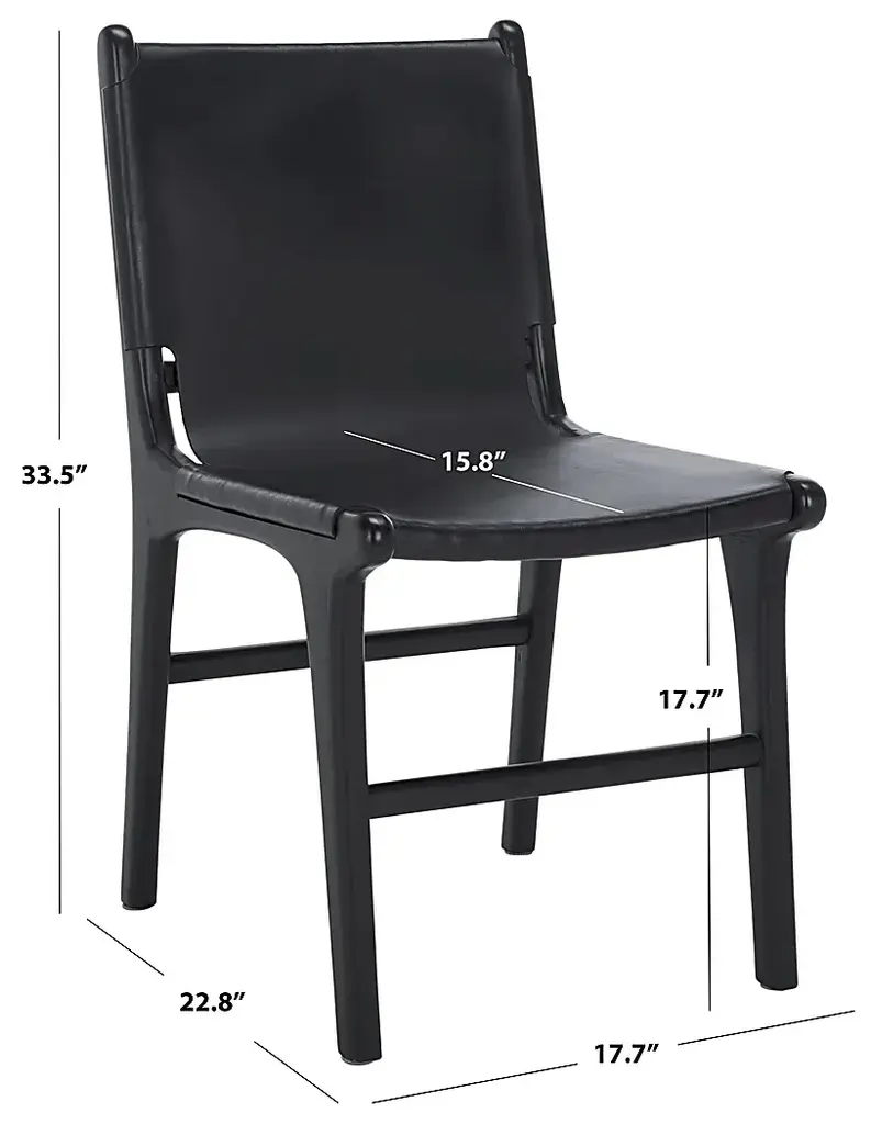 Add timeless sophistication to your dining space with this Sunlants black side chair. Expertly crafted from solid teak wood and upholstered in luxurious top grain leather, this chair offers a sleek black finish that complements both modern and classic interiors. Its substantial frame ensures lasting durability, while the supple leather provides superior comfort and a flawless finish. More than just a seat, this set of chairs a is a statement of refined taste and design excellence. Perfect for elevating everyday meals into memorable moments. Customer assembly required.