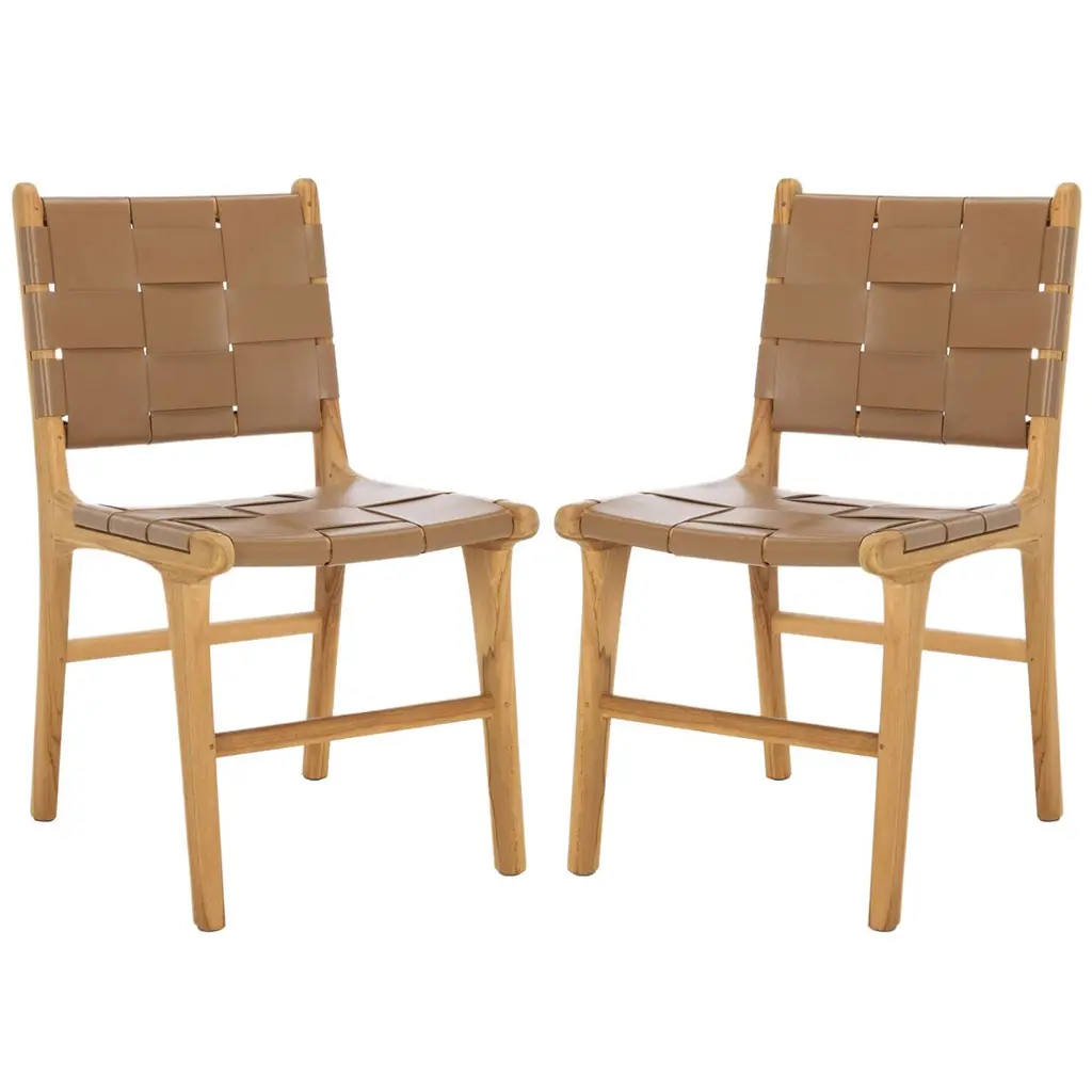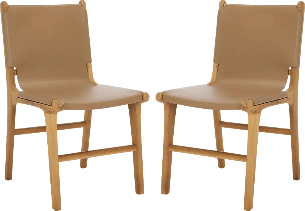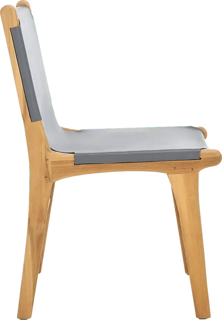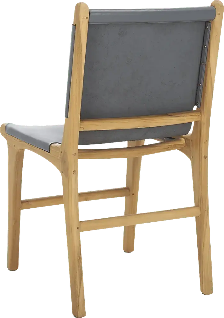 Add timeless sophistication to your dining space with this Sunlants gray side chair. Expertly crafted from solid teak wood and upholstered in luxurious top grain leather, this chair offers a sleek finish that complements both modern and classic interiors. It's substantial frame ensures lasting durability, while the supple leather provides superior comfort and a flawless finish. More than just a seat, this set of chairs a is a statement of refined taste and design excellence. Perfect for elevating everyday meals into memorable moments. Customer assembly required.
