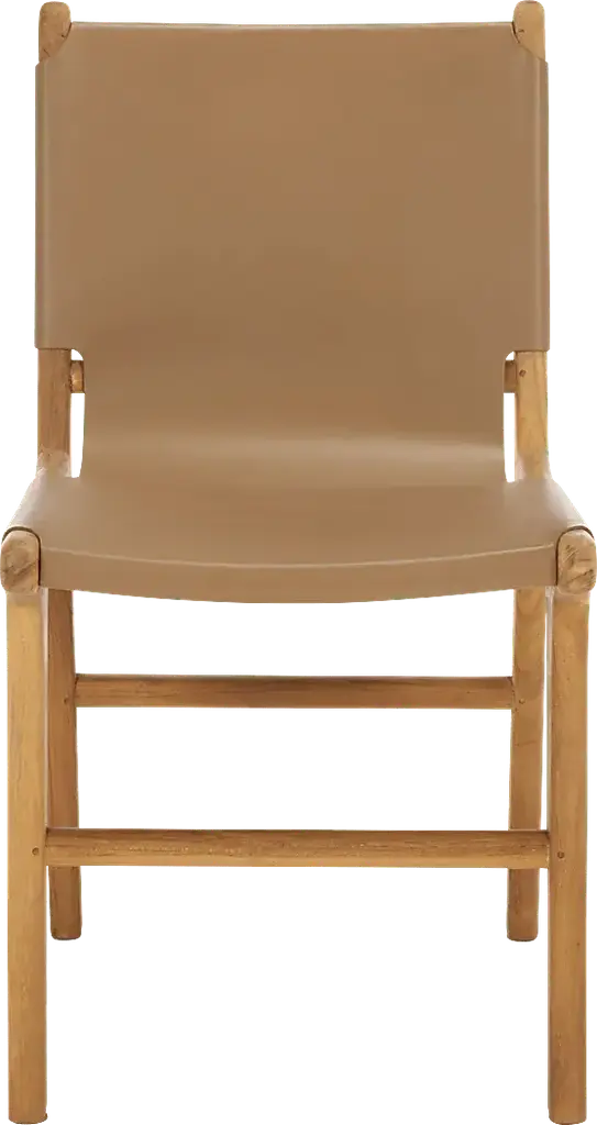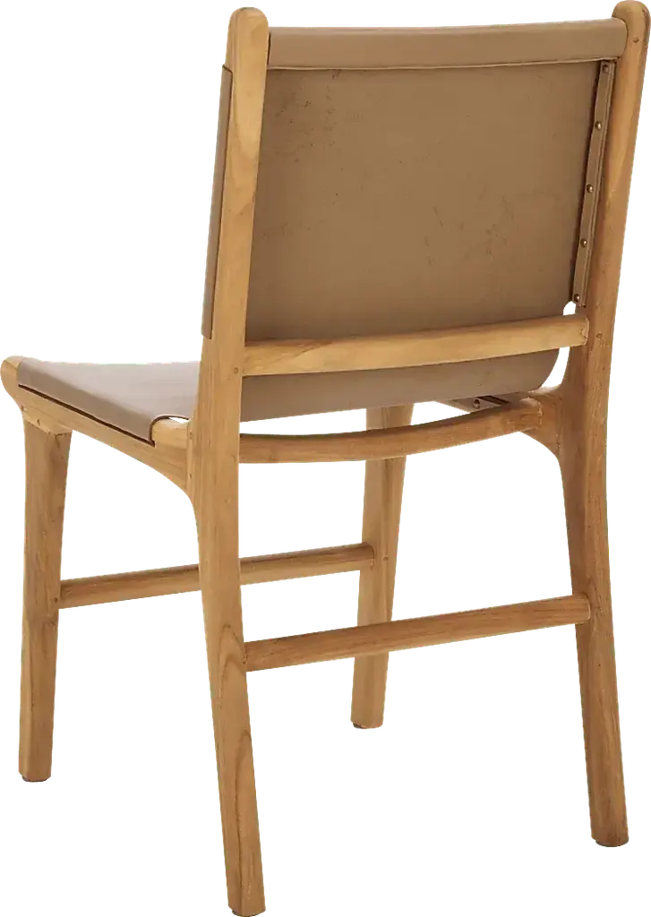 Add timeless sophistication to your dining space with this Sunlants brown side chair. Expertly crafted from solid teak wood and upholstered in luxurious top grain leather, this chair offers a sleek finish that complements both modern and classic interiors. It's substantial frame ensures lasting durability, while the supple leather provides superior comfort and a flawless finish. More than just a seat, this set of chairs a is a statement of refined taste and design excellence. Perfect for elevating everyday meals into memorable moments. Customer assembly required.