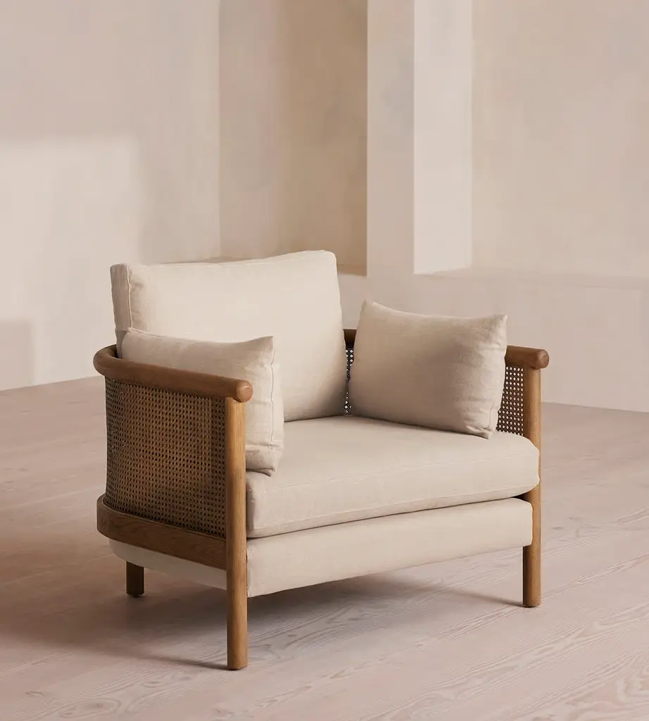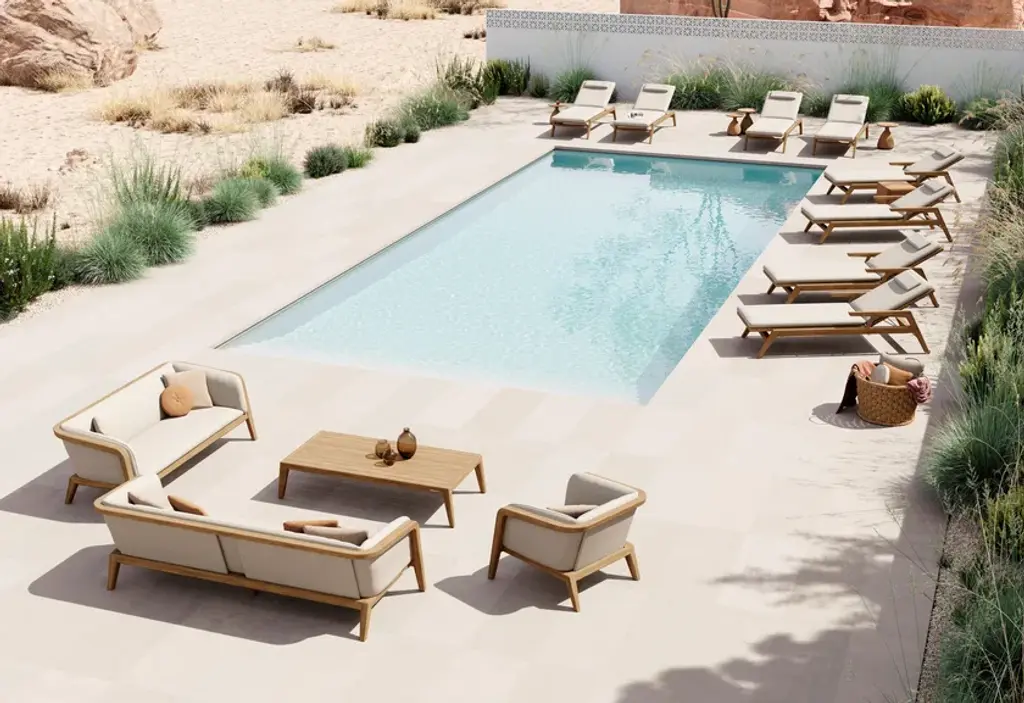 Sunrise is a fabric garden armchair with armrests.Cushion set includes:1x Sunrise seat & back cushion CUS00048461x Turo throw pillow D1 40x40 square CUS0001388Clean lines and strong curves give SUNRISE an undeniably compelling posture, while the warmth of its materials and openness of its frame form an irresistible invitation for endless moments of outdoor enjoyment. Available in warm brushed teak and bold teak, SUNRISE includes a complete range of both lounge and dining furniture. Dark teak details and a backrest upholstered in fabric or batyline® complete the design of this robust yet elegant teak collection by Matthew Townsend. From countryside residence to avant-garde hotel or even a futuristic yacht, SUNRISE’s versatility makes it a captivating addition to any environment.