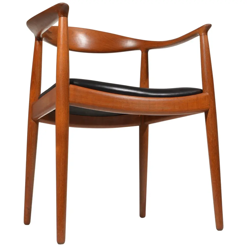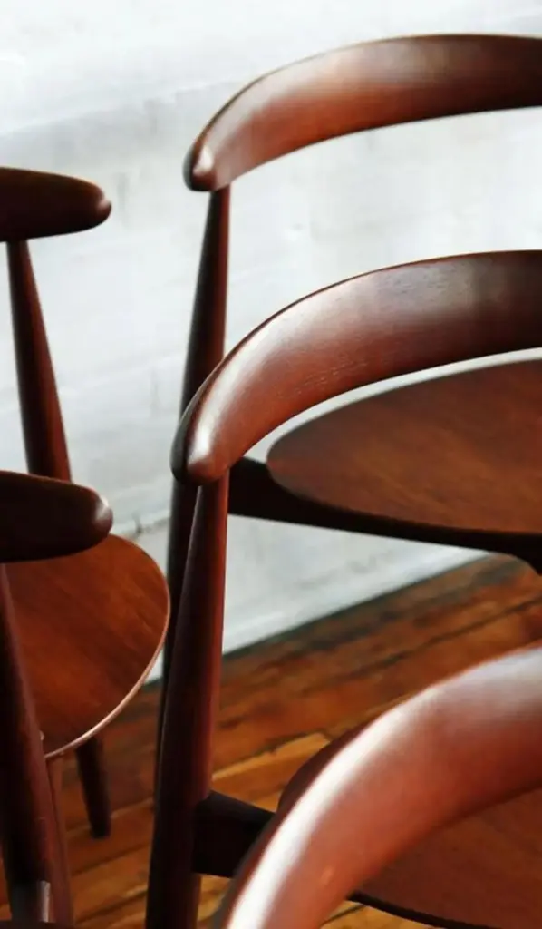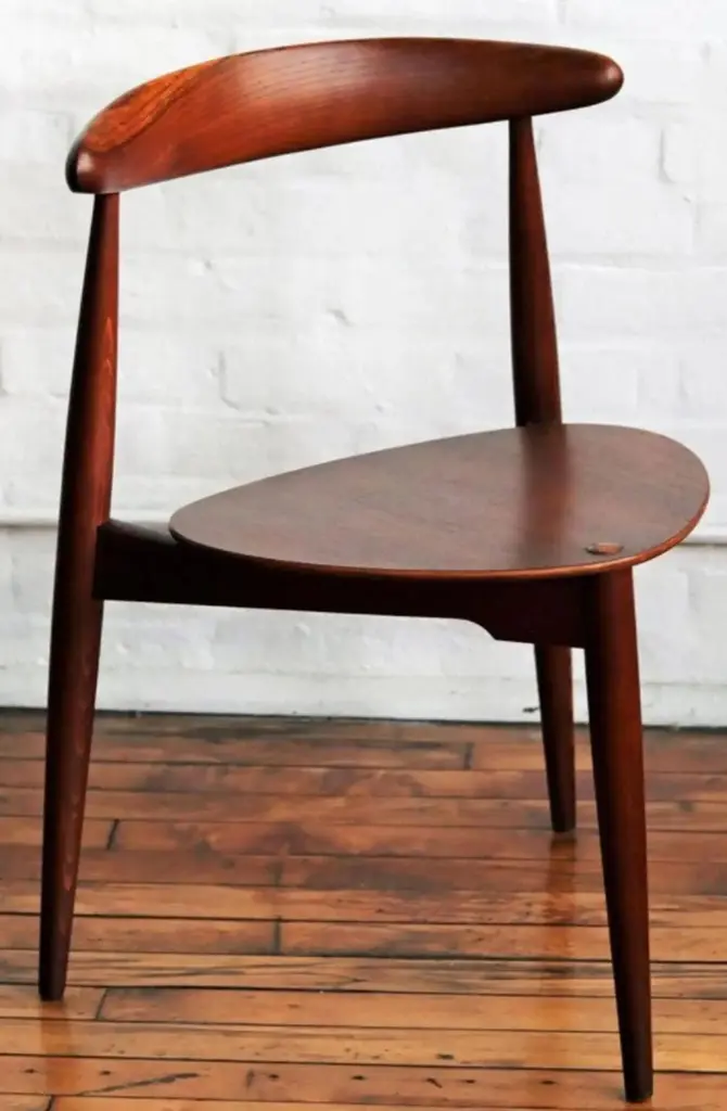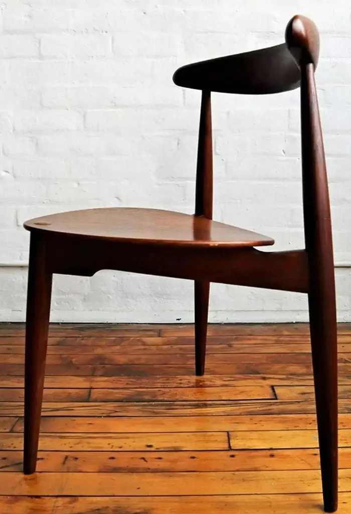 For your consideration are these beautiful dining chairs designed by Hans Wegner. Having gorgeous original patina with splendid craftsmanship while utilizing a space saving design. Unusual and rare that these chairs are all teak as opposed to a mix of oak and teak. Lovingly cared for and ready for use. Amazing vintage condition!Model FH4103 "Heart" stacking chairs produced by Fritz Hansen, Denmark.A rare opportunity to own this amazing set or buy up to ten.price per chair