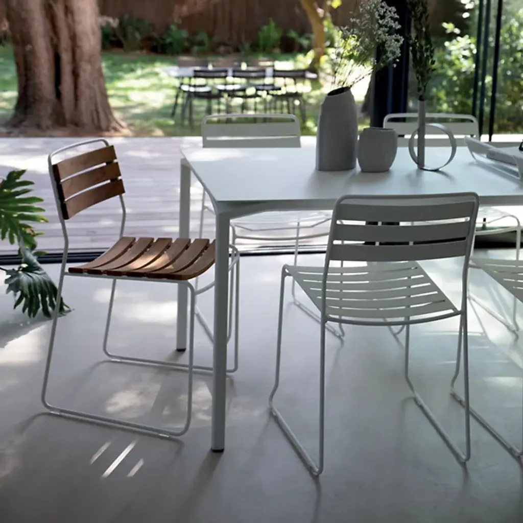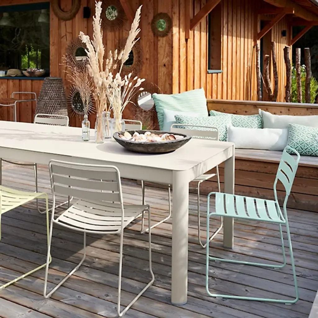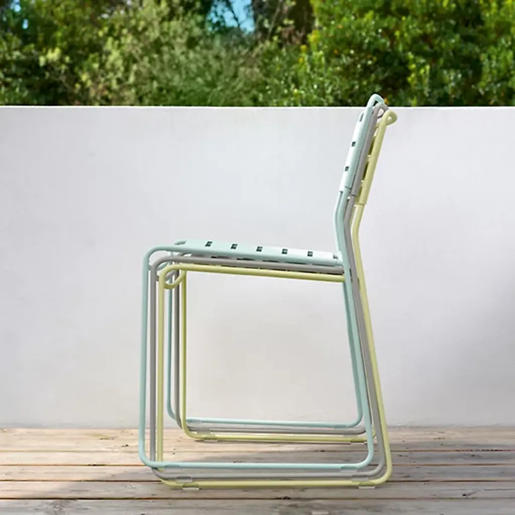 Made entirely out of steel, the comfort of the Fermob Surprising Chair, Set of 2 in outdoor dining settings is a pleasant surprise, indeed. The frame is solid steel rod, while the seat and back are made out of curved lasercut slats of sheet steel. Each chair is also conveniently lightweight and stackable up to 10 high when not in use.