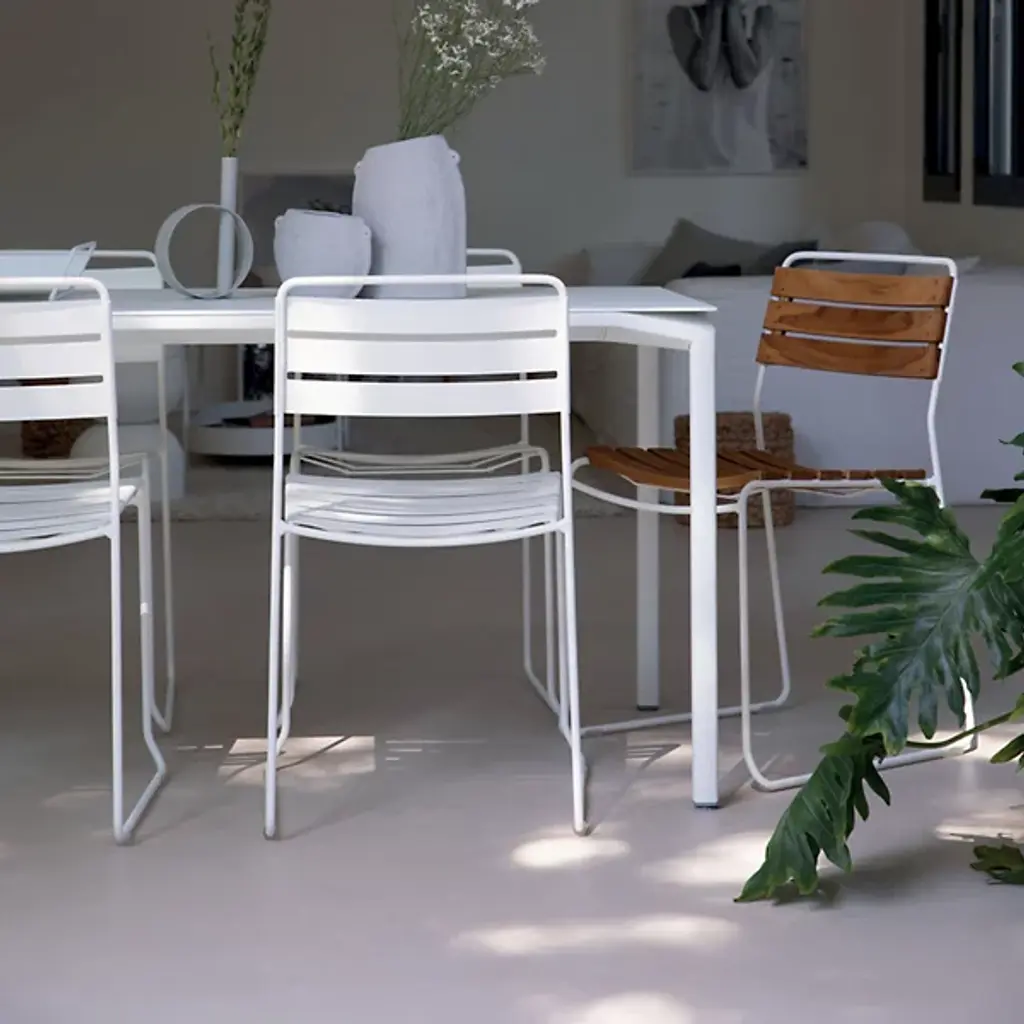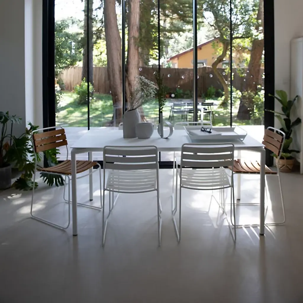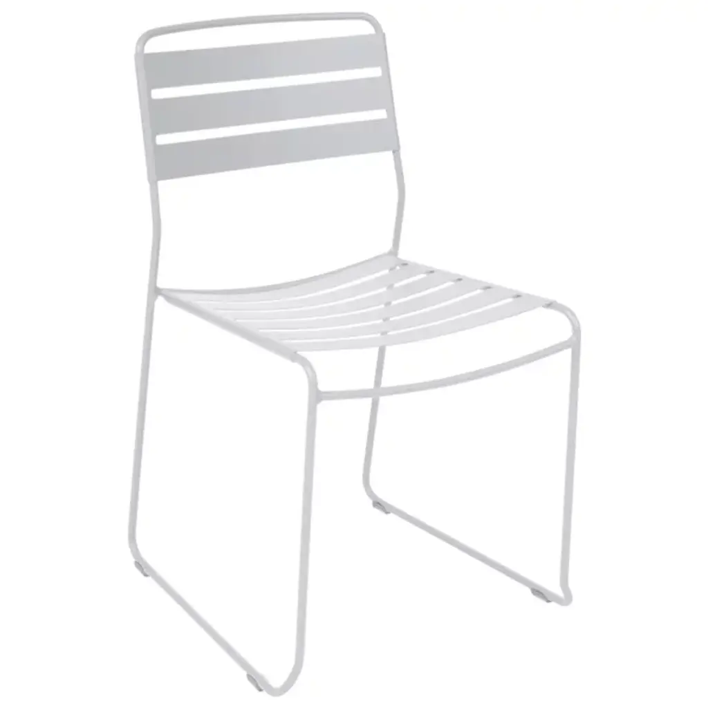 Made entirely out of steel, the comfort of the Fermob Surprising Chair, Set of 2 in outdoor dining settings is a pleasant surprise, indeed. The frame is solid steel rod, while the seat and back are made out of curved lasercut slats of sheet steel. Each chair is also conveniently lightweight and stackable up to 10 high when not in use.