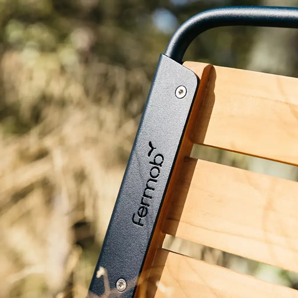Surprisingly versatile. Fermob's Surprising Teak Chair, Set of 2 is a Harald Guggenbichler design that introduces the warmth of wood for a new dimension that gives this chair its universal appeal. A harmonious balance of Metal and Wood, the design features a strong Steel rod frame with a Teak slatted seat and backrest. Ergonomics and practicality are part of the equation, with an angular back rest and curved seat for comfort and heavy duty plastic foot glides for floor protection. Steel gets a weather and UV protective powder coating and Teak is naturally weather-resistant, making this dining chair a solid choice for outdoor grilling with friends and family. With a design that could grace a cruise liner or complete a '60's inspired kitchen, this stackable chair is full of surprises.