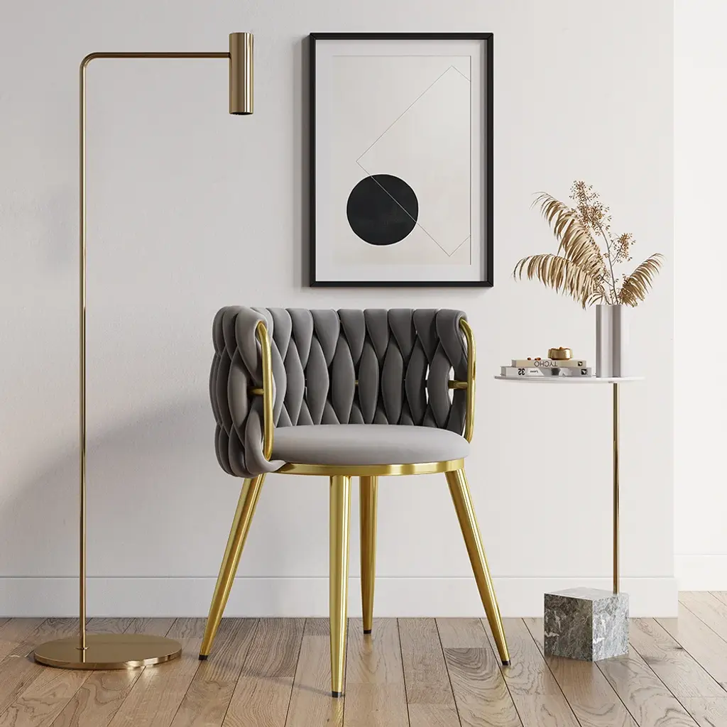 Boasting clean lines and a sleek modern look, this dining chair makes an ideal focal point in your space. It features a barrel back with velvet upholstery that offers statement-making appeal. Padded with high-density foam padding, this chair cradles you in comfort while you enjoy a meal with friends.