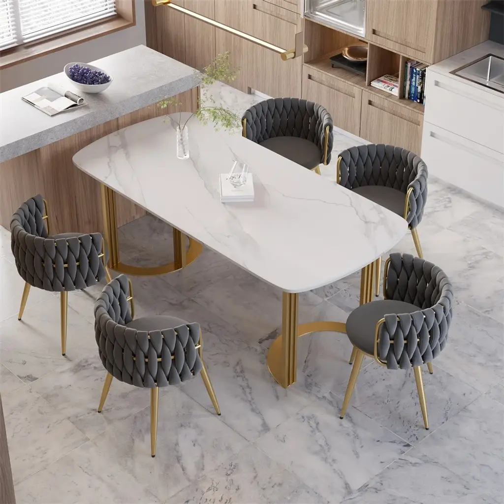 Sweave Nordic Light Gray 6-Piece Barrel Back Dining Chair Round Accent Velvet Upholstery