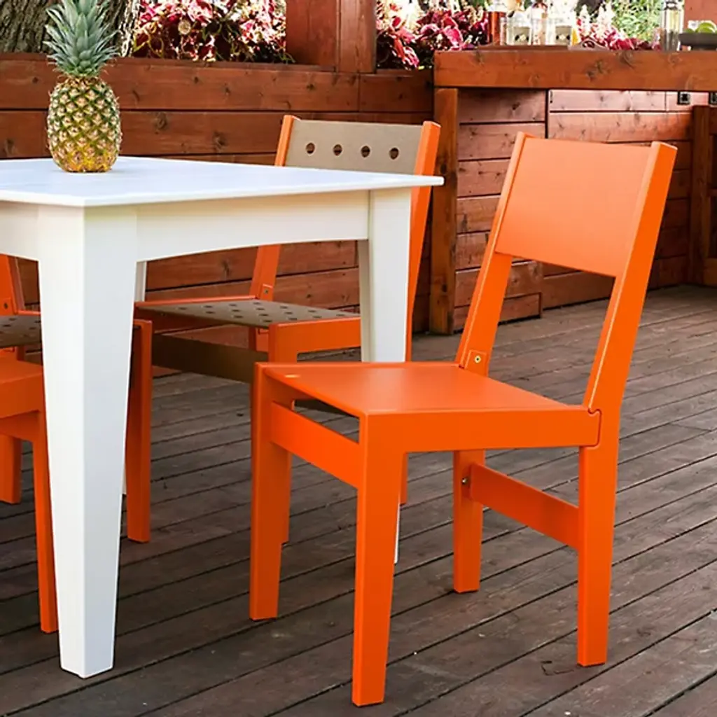 Enjoy the great outdoors comfortably seated in the T81 Outdoor Dining Chair by Loll. It's a great option for al fresco dining and its slim stature allows for placement in smaller spaces like porches and verandas. Heavy enough to stay put on windy days and durably made to withstand year-round elements, this colorful weatherproof chair enhances your space with a fun vibe and fashionable functionality.