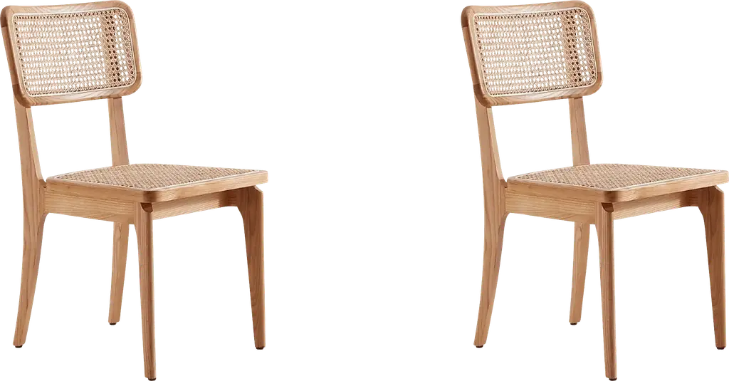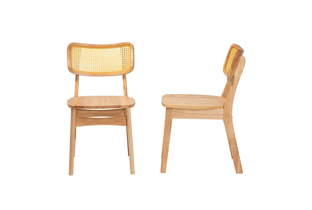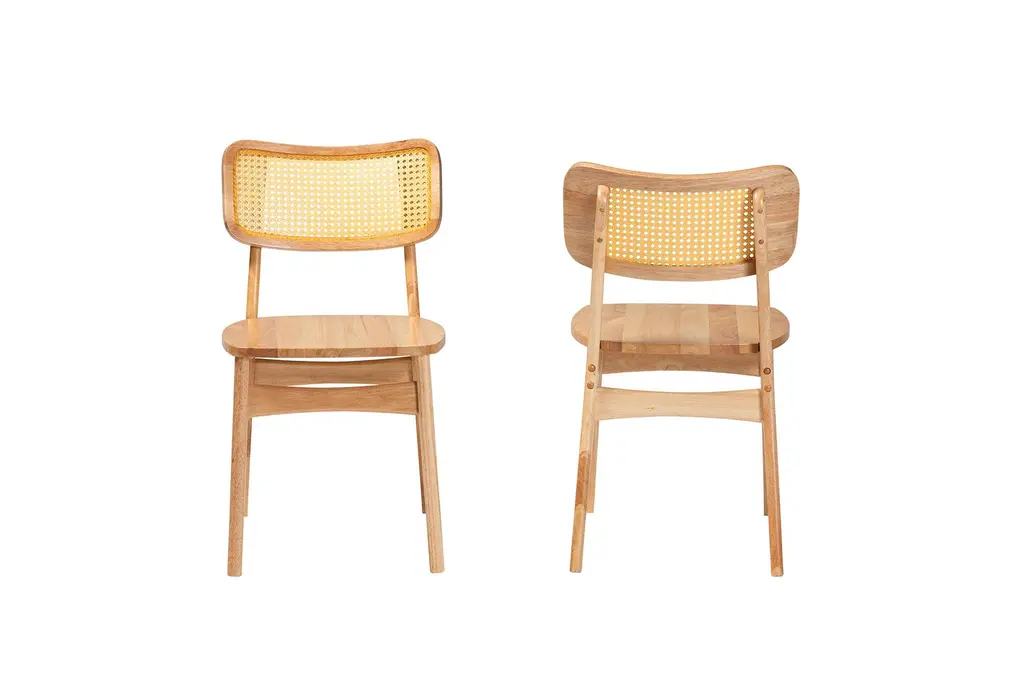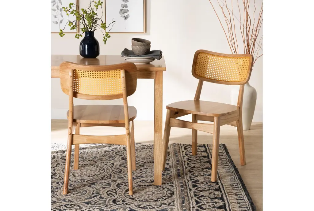 Tadeo Mid-Century Modern Oak Brown Wood & Rattan Dining Chair Set Of 2 | Armless | Woven