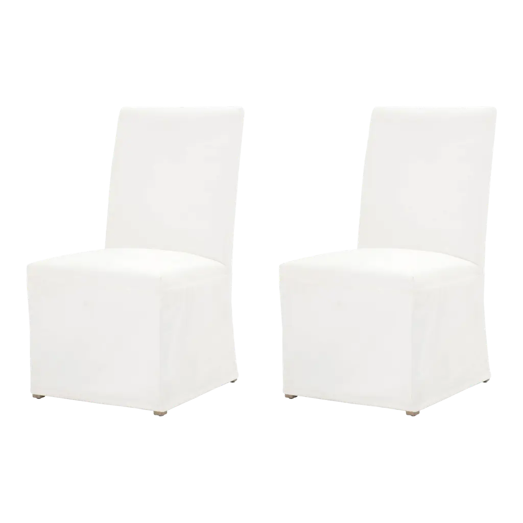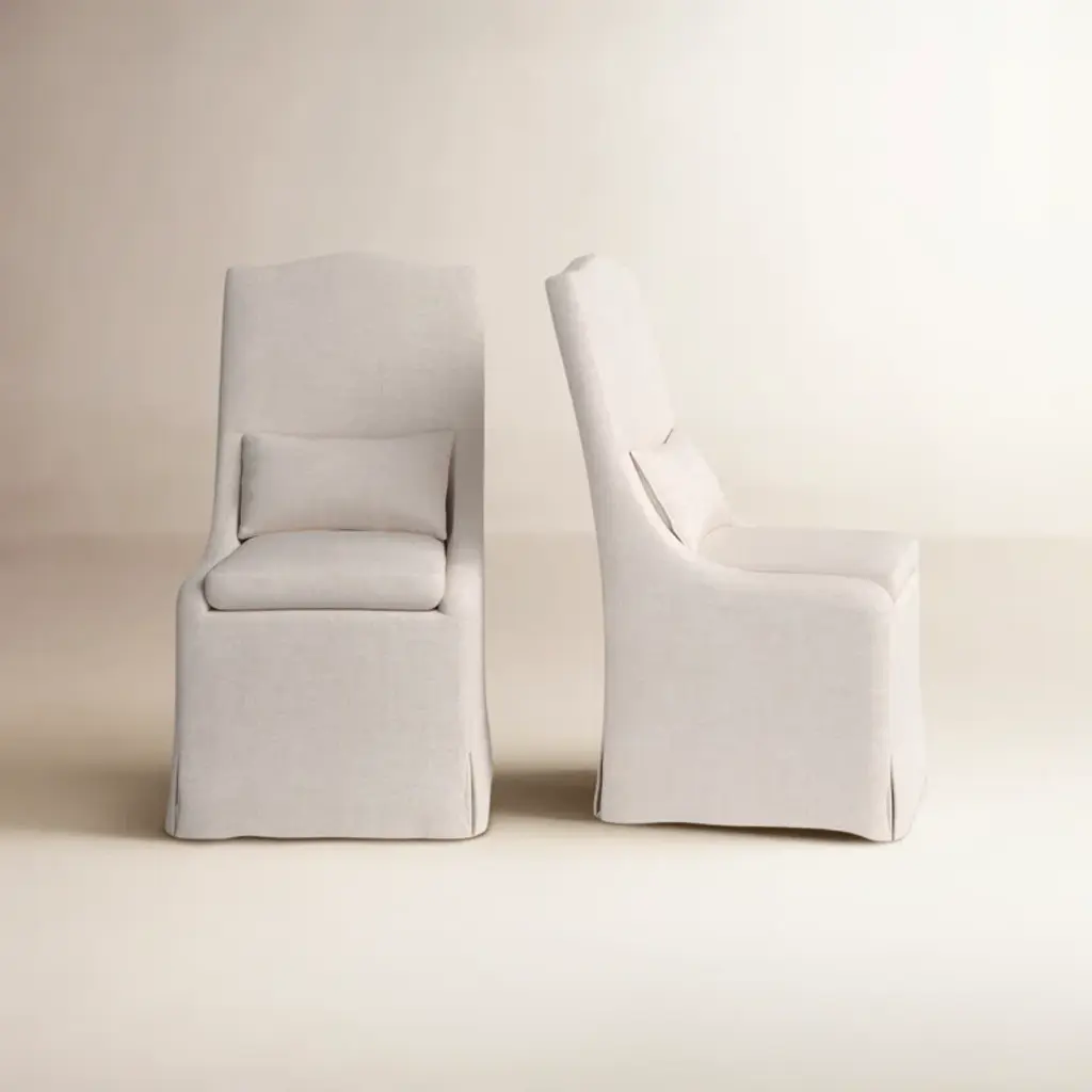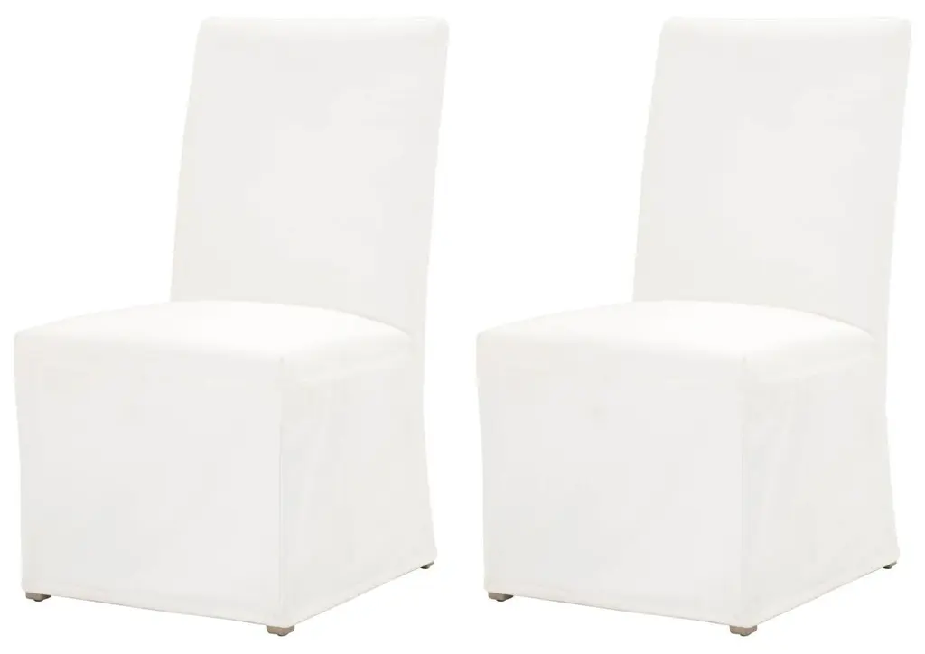 These sunbrella slipcover dining chairs are upholstered in a soft, yet durable, flat woven micro-denier polyester fabric with a vast, beautiful color line. The subtle cross-dyed technique that is used in coloring this fabric gives it great dimensional quality and a nice linen look. Featuring high resiliency 2.0 density foam, these chairs are built with your comfort in mind.