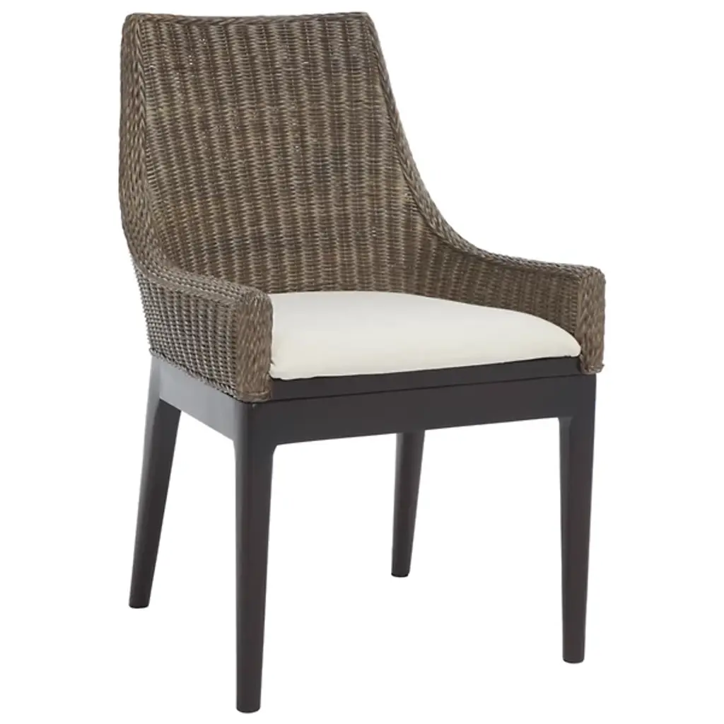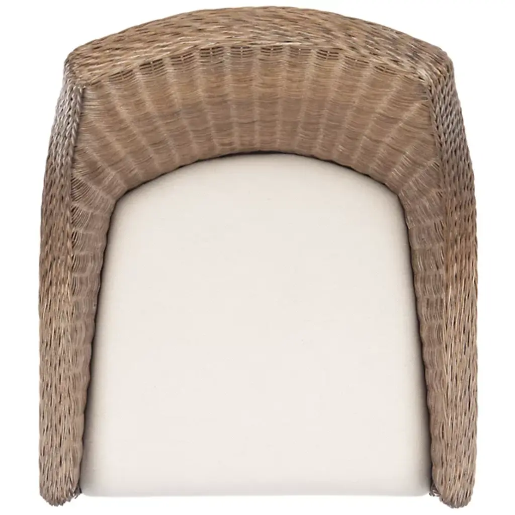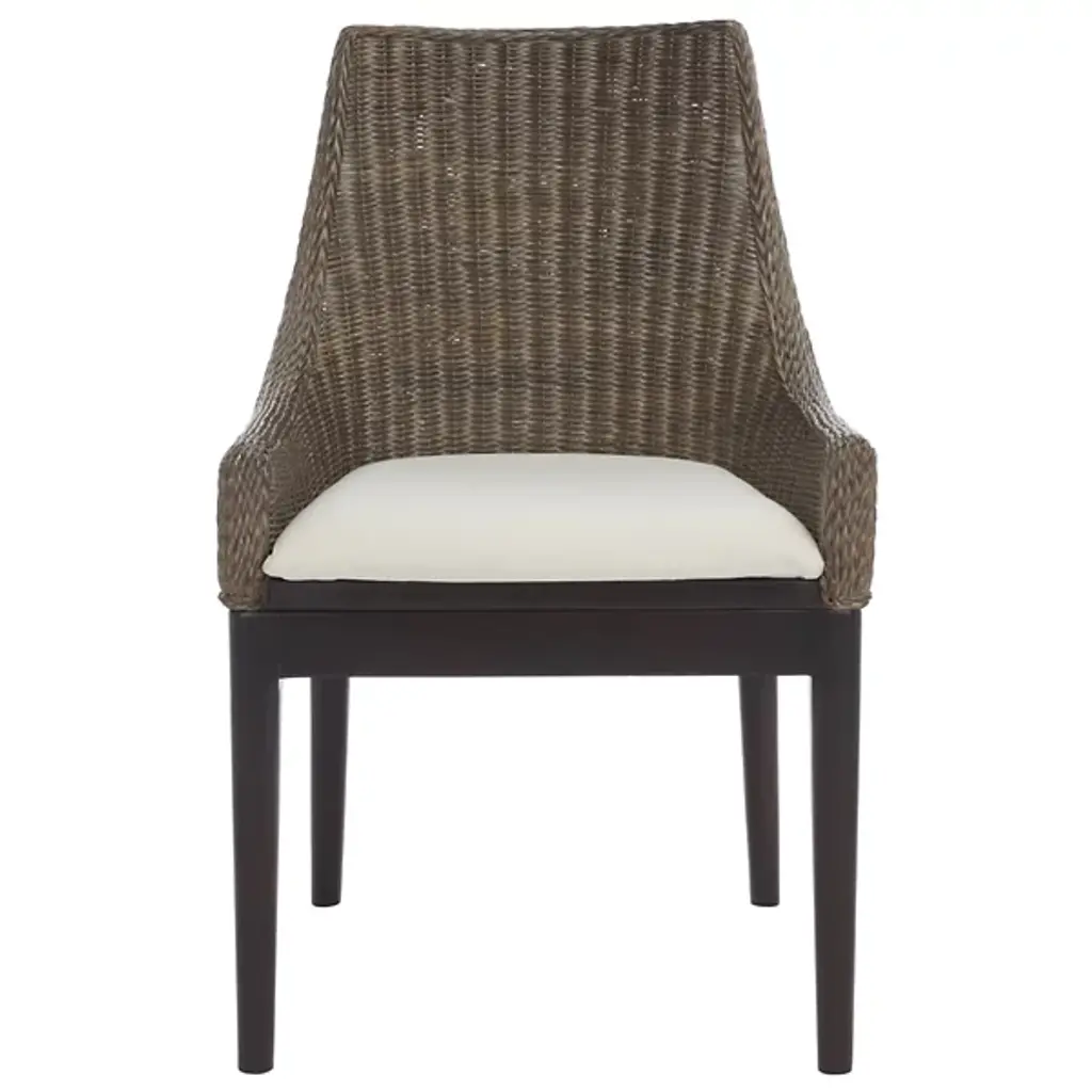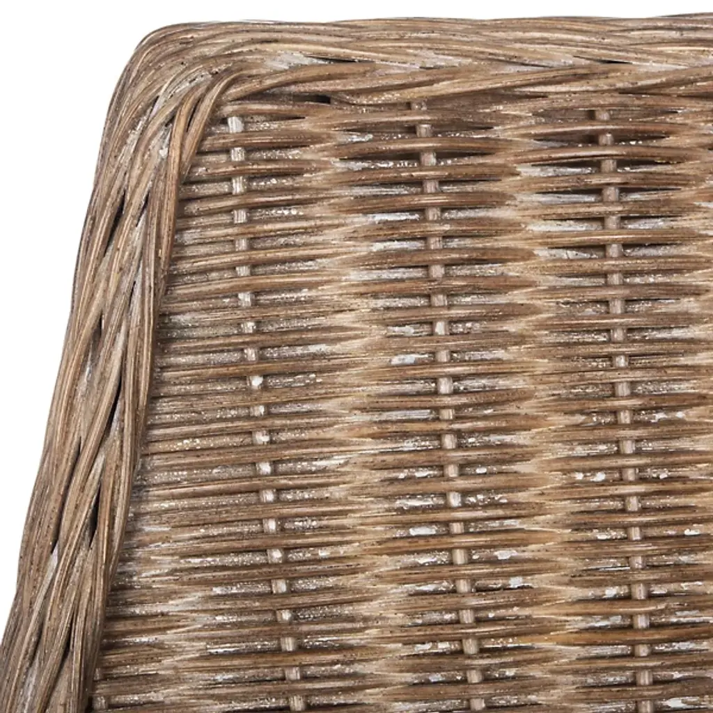 The Talita Sloping Dining Armchair from Alder & Ore embodies modern coastal chic and design fusion. Its classic sloping frame is beautifully transformed with finely woven rattan, creating an emblem of stylish comfort. The chair features slender mahogany wood legs, striking the perfect balance between classic and contemporary design. The soft white cushion, upholstered in cotton fabric and filled with foam, ensures elegance and comfort around your dining table. Crafted with a combination of rattan weave on the seat, the fabric and mahogany frame contrast nicely, elevating your space’s unique charm.