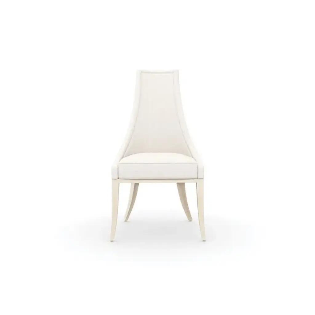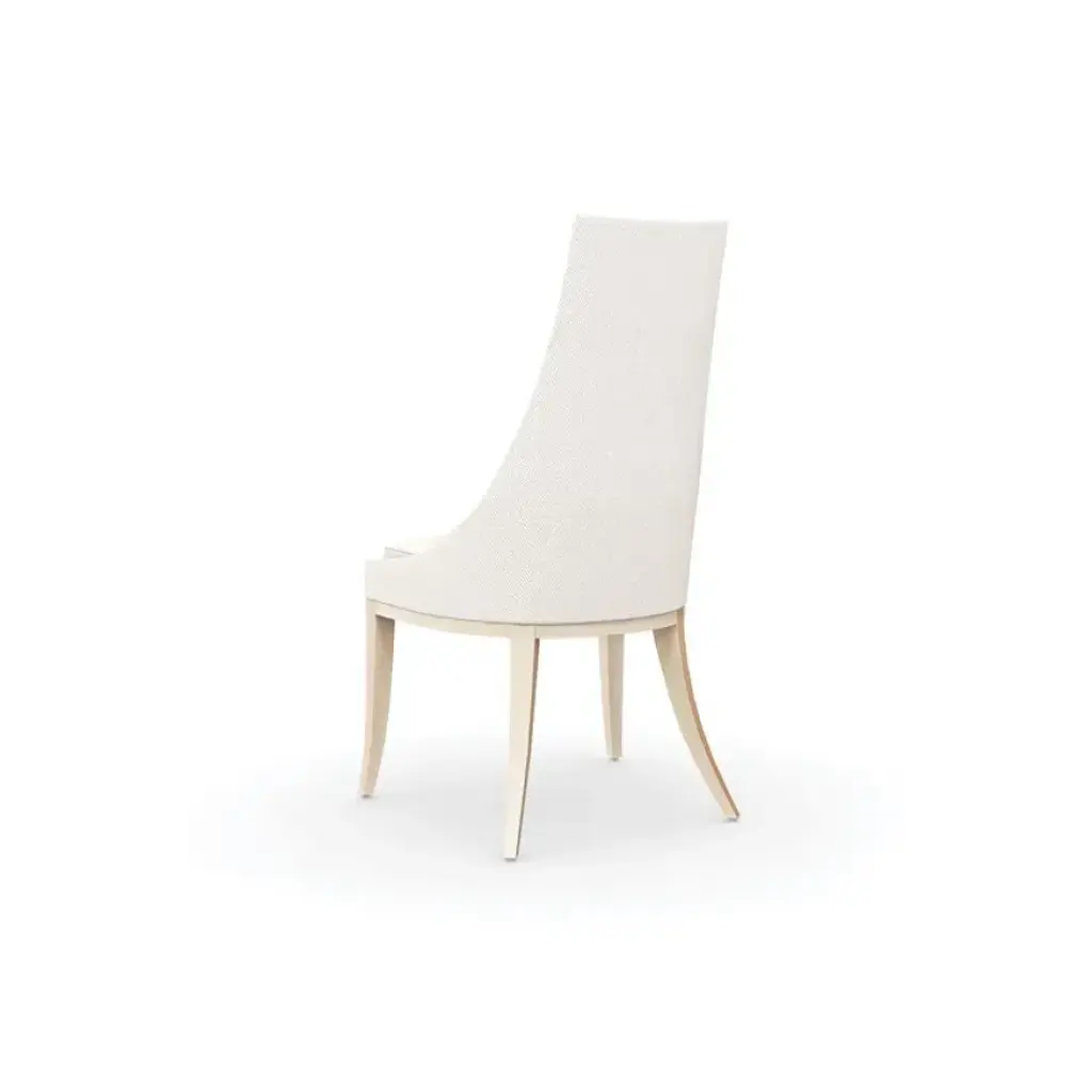 An instant classic in a subtle herringbone performance fabric, this sophisticated dining chair brings a beautiful balance of style and comfort. Its enveloping silhouette is designed with a plush seat and a tall, gradually tapering back; perfectly proportioned to linger in good company around the table. Tapered wood legs in Soft Silver Paint add a hint of shimmer and casual glamour. Expertly tailored in a luxurious performance fabric that’s easy to maintain. Easily transitions from dining table to desk.