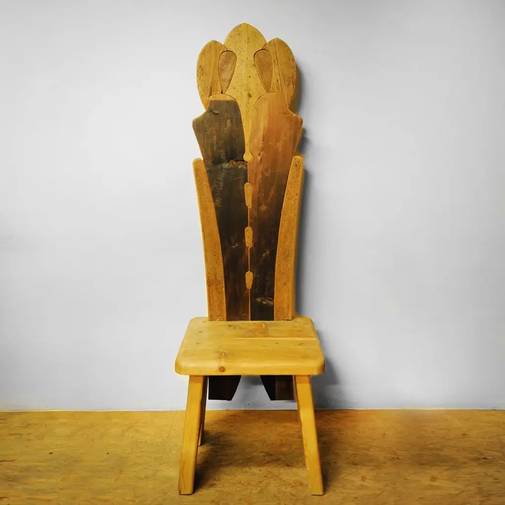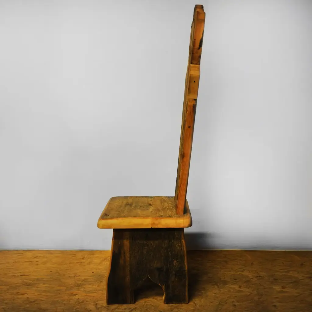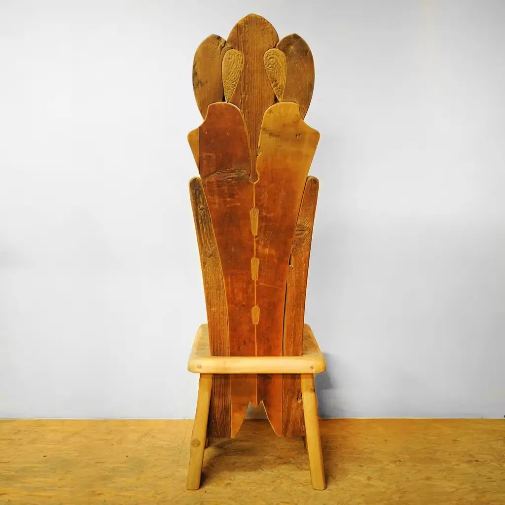 Part of the Throne collection, featuring twenty different designs, this chair is a one-of-a-kind piece of functional decor crafted of larch, fir, Swiss pine, and pine sourced from 16th century homes. The unique textures of these different types of reclaimed wood, protected with real beeswax polish, creates a stunning effect that will make a statement in a rustic or modern home. Either as accent chair in a study or living room, or as dining chair along with other designs, this piece will be eye-catching and sophisticated.