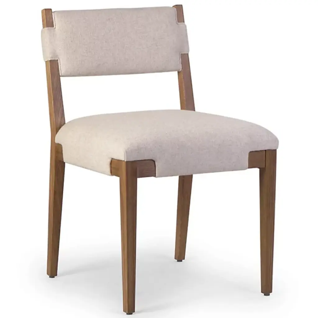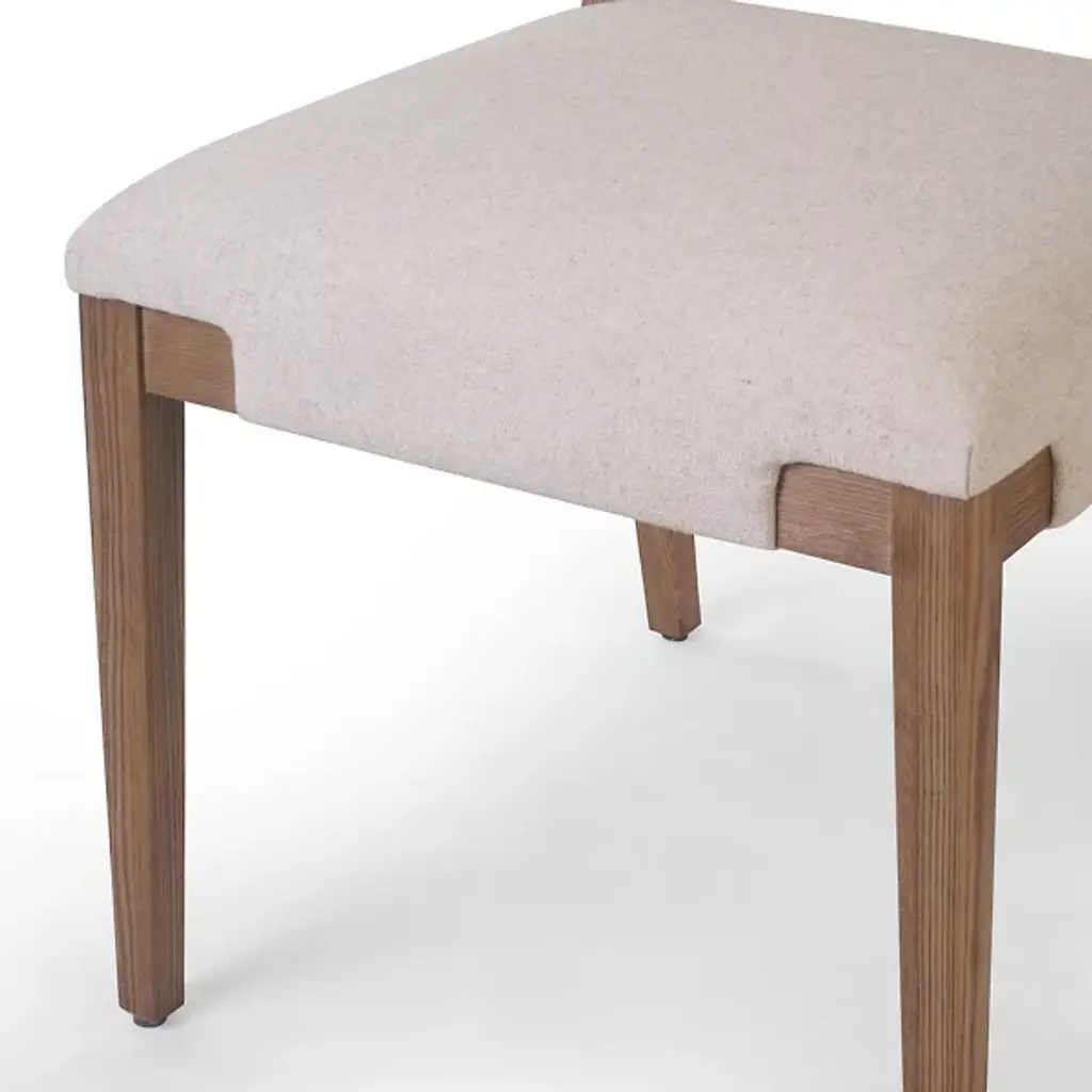 The Tamari Dining Chair from Four Hands features a light-finished solid ash frame that beautifully complements the linen-blend high-performance seating, creating a bright and organic aesthetic for everyday dining. The performance fabric is designed to withstand spills, stains, and heavy use, offering long-lasting comfort and exceptional durability. This chair combines natural elegance with practical functionality, making it a perfect addition to any dining space.