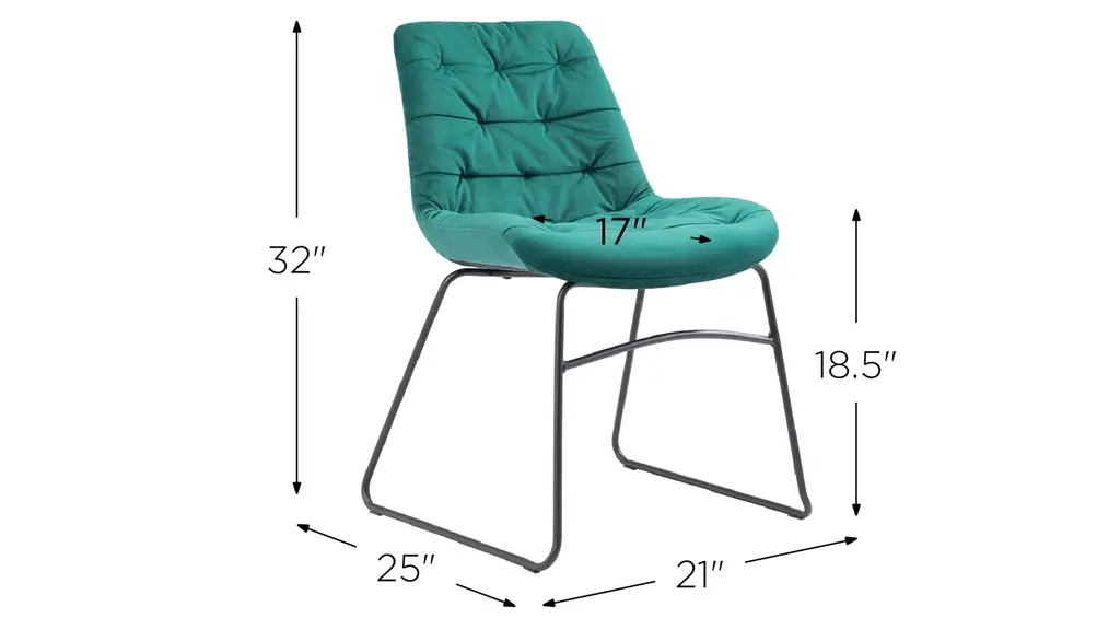The Tammy Dining Chair has a polyester velvet covered seat over a powder coated steel frame.