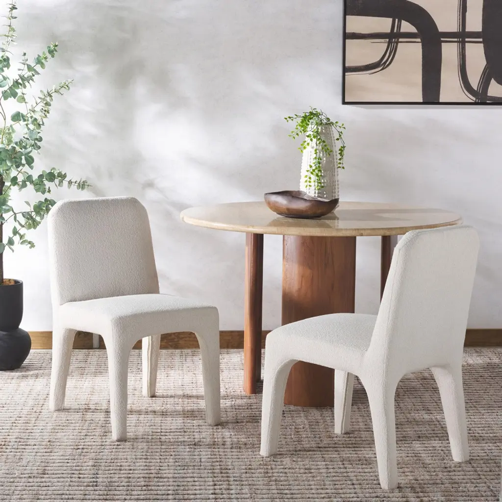 Tara Modern Classic White Performance Boucle Dining Chair - Set Of 2
