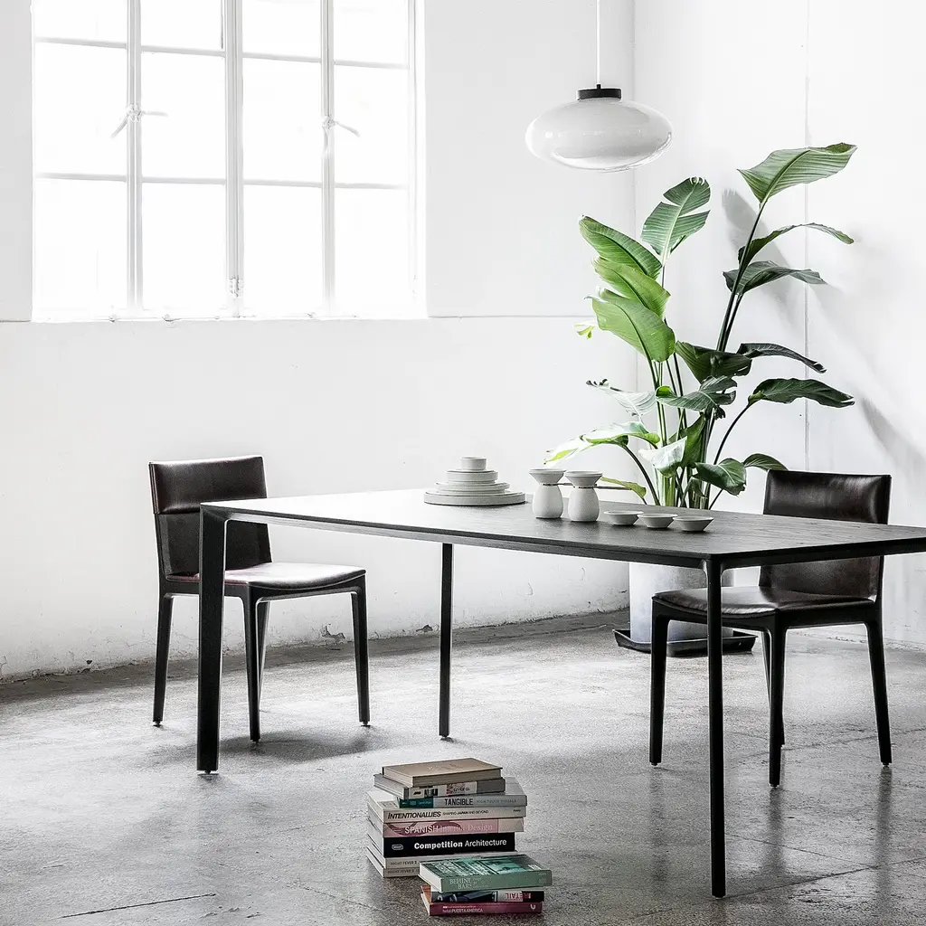 A thickly upholstered pad at the top of the seat back brings a sporty touch to Yabu Pushelberg’s side chair for Stellar Works. Taylor’s sleekly profiled wood frame in solid walnut or ash lends a timelessly contemporary look, with upholstery in a premium fabric or leather. The chameleon-like seating makes an accommodating side or dining chair for a wide range of contract and residential settings.