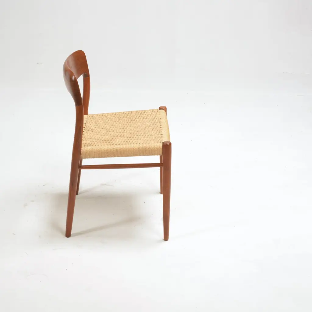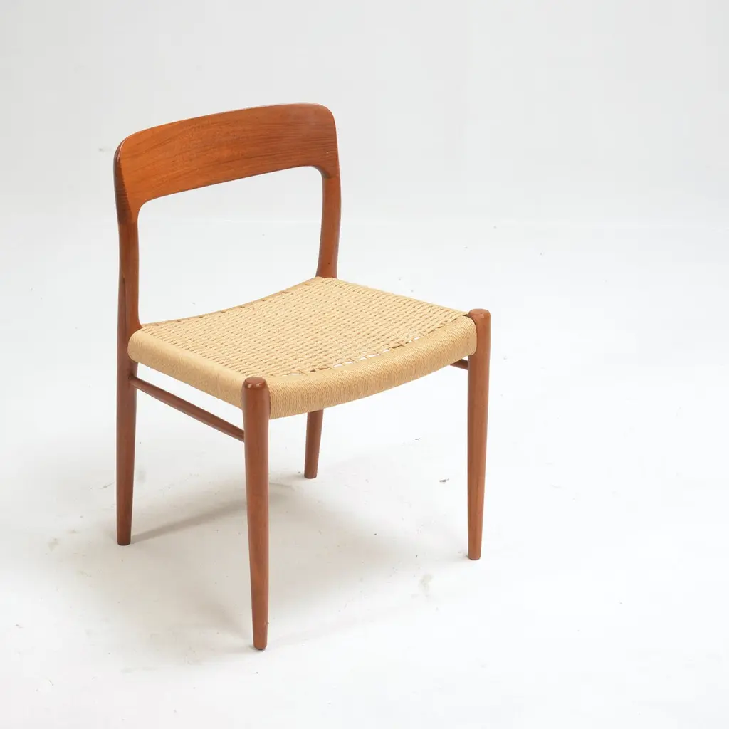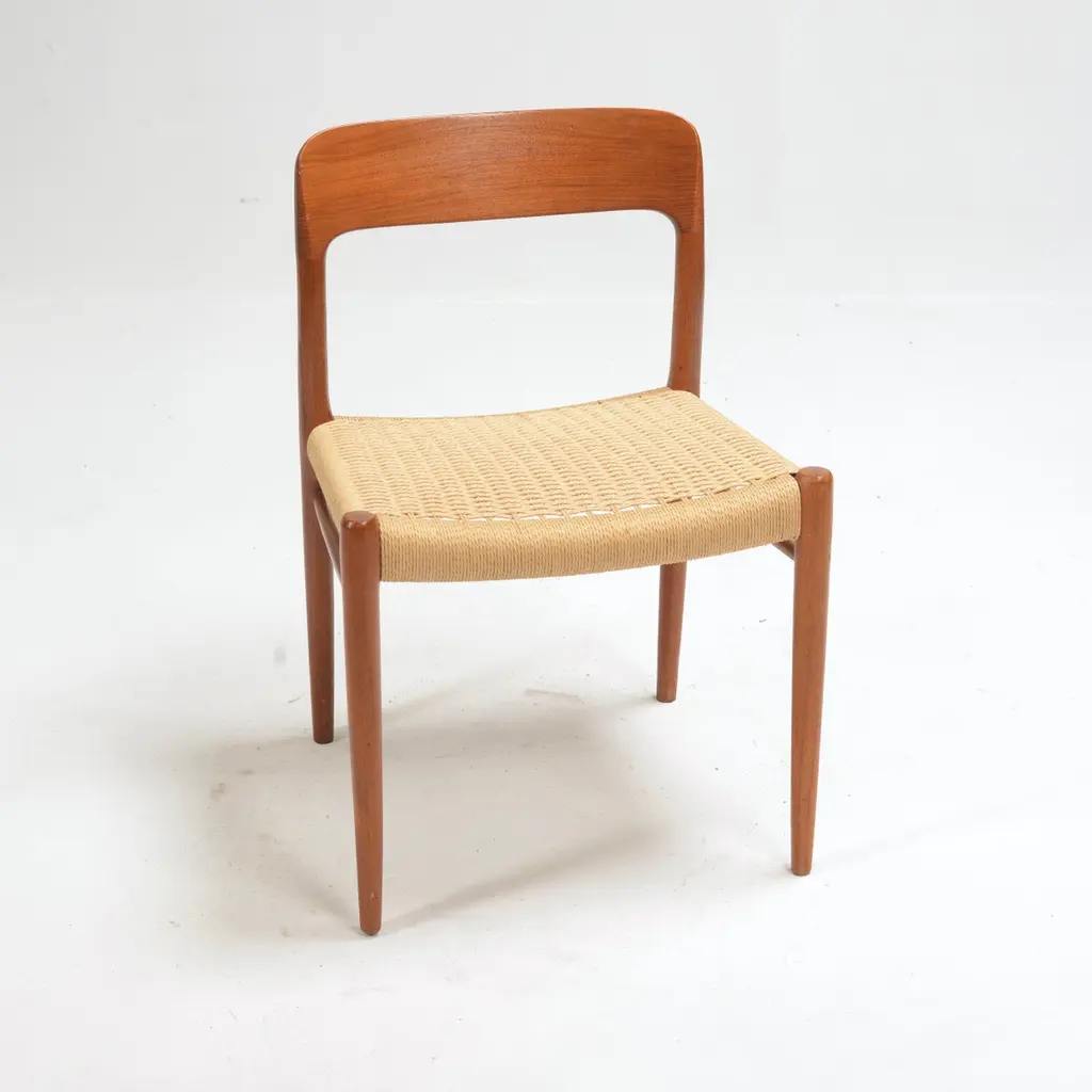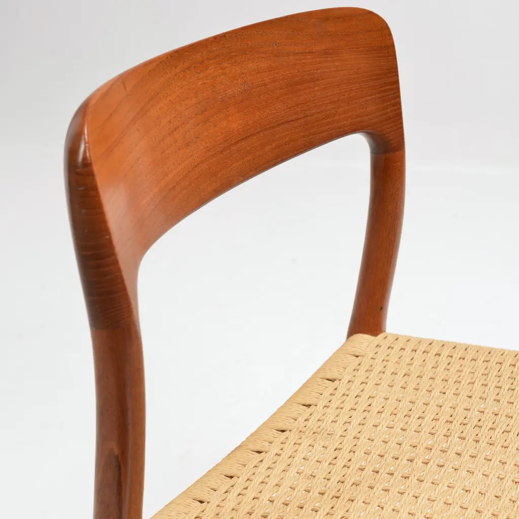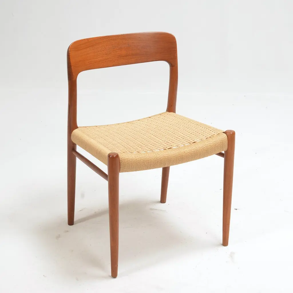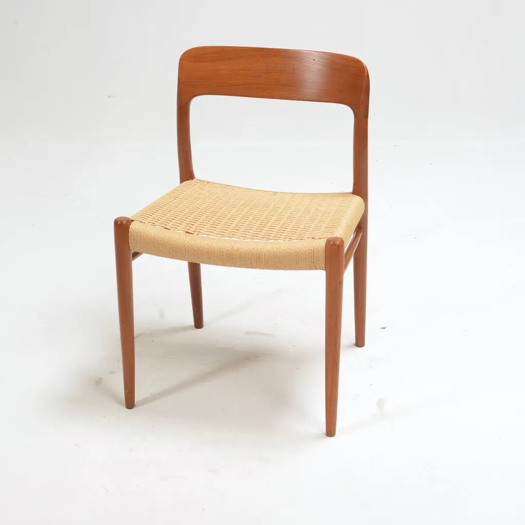 Set of 6 Niels Otto Moller model 75 dining chairs designed in 1954. Professional re-roped in authentic danish cord. Price is per chair.Currently we have 4 other Moller models on display in our Los Angeles showroom. Please inquire for updated inventory.