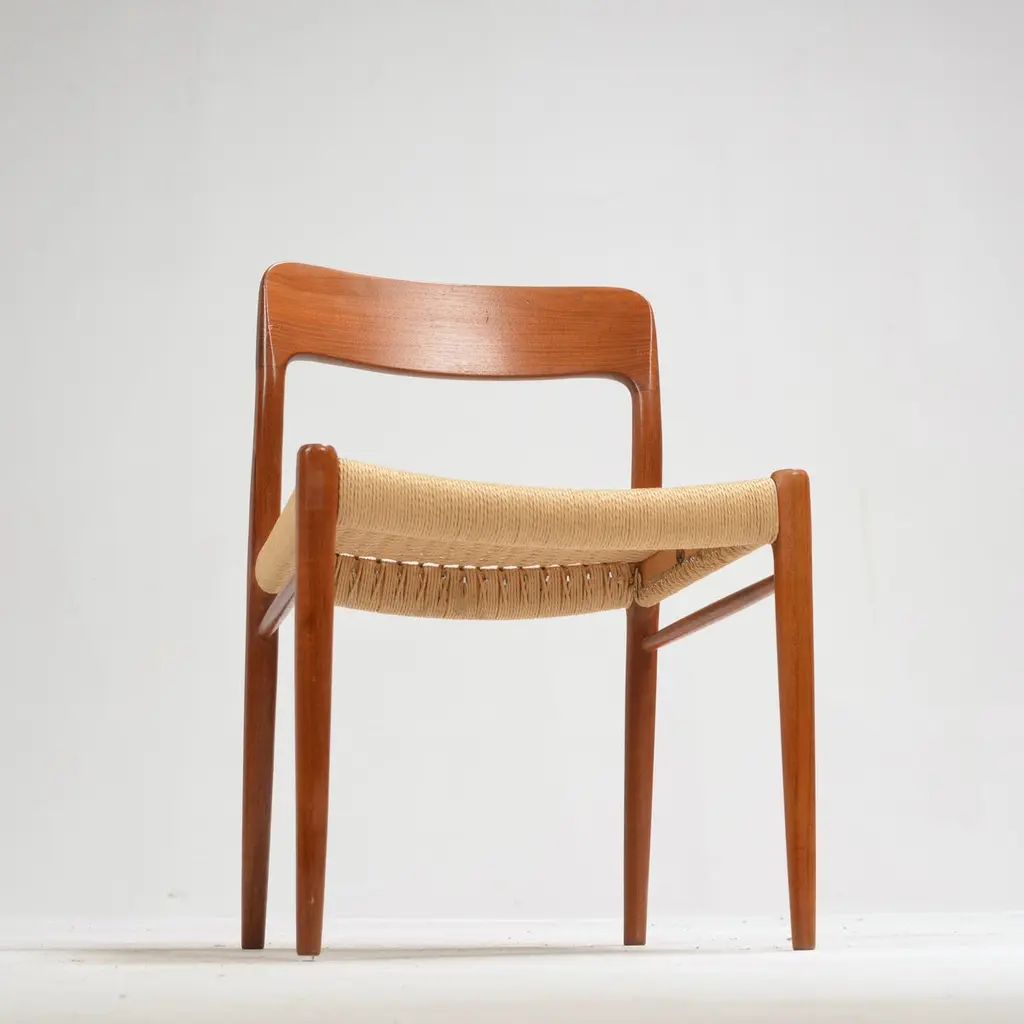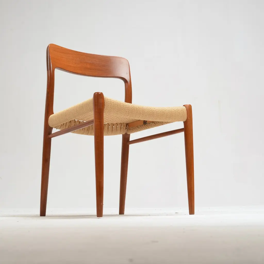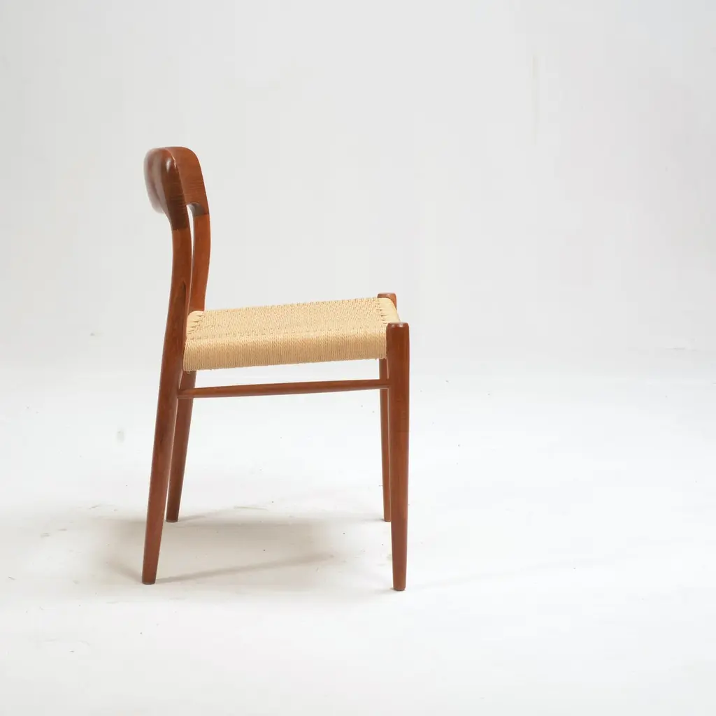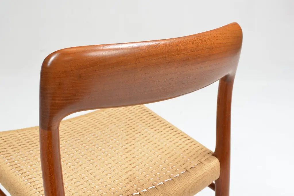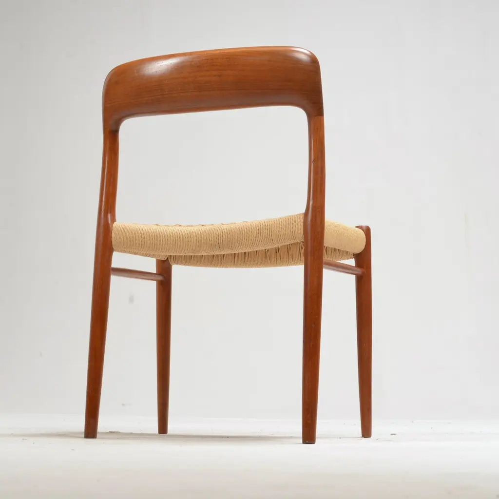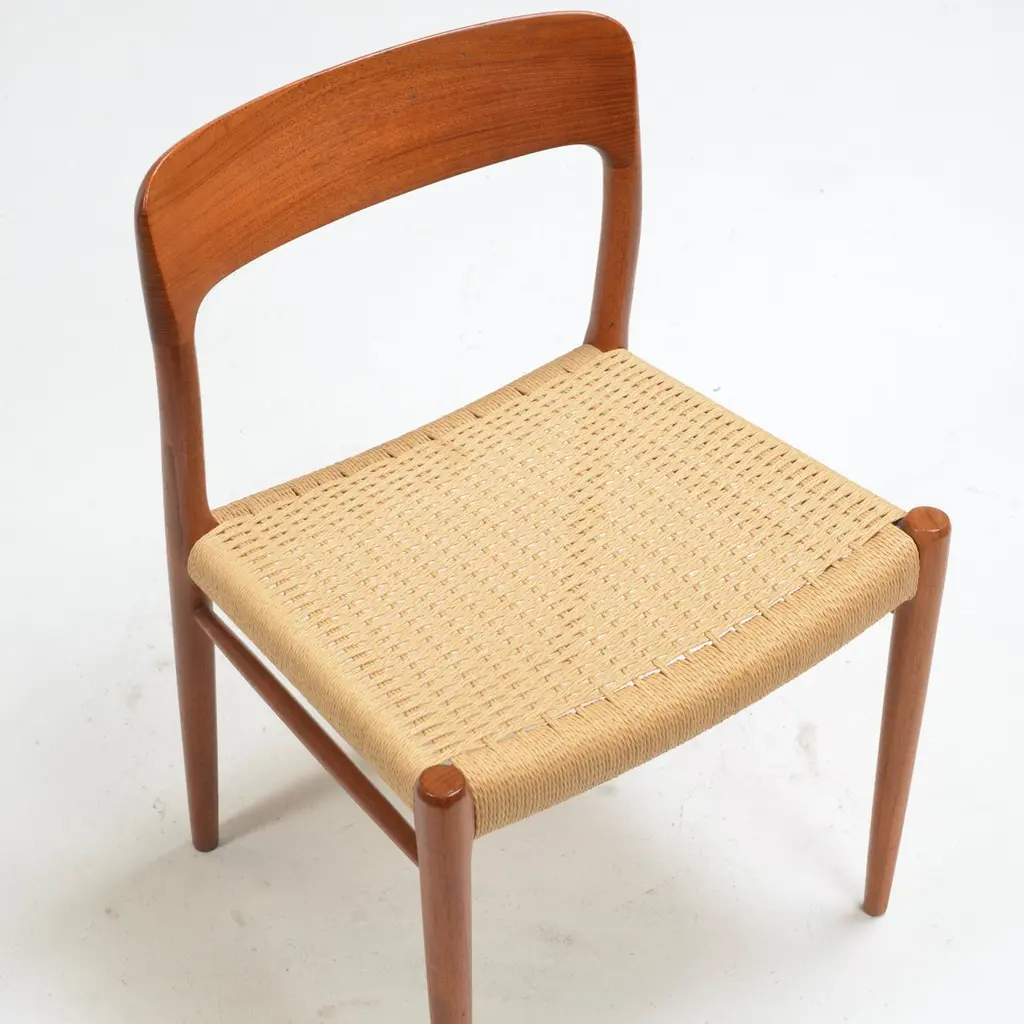 Set of 6 Niels Otto Moller model 75 dining chairs designed in 1954. Professional re-roped in authentic danish cord. Price is per chair.Currently we have 4 other Moller models on display in our Los Angeles showroom. Please inquire for updated inventory.