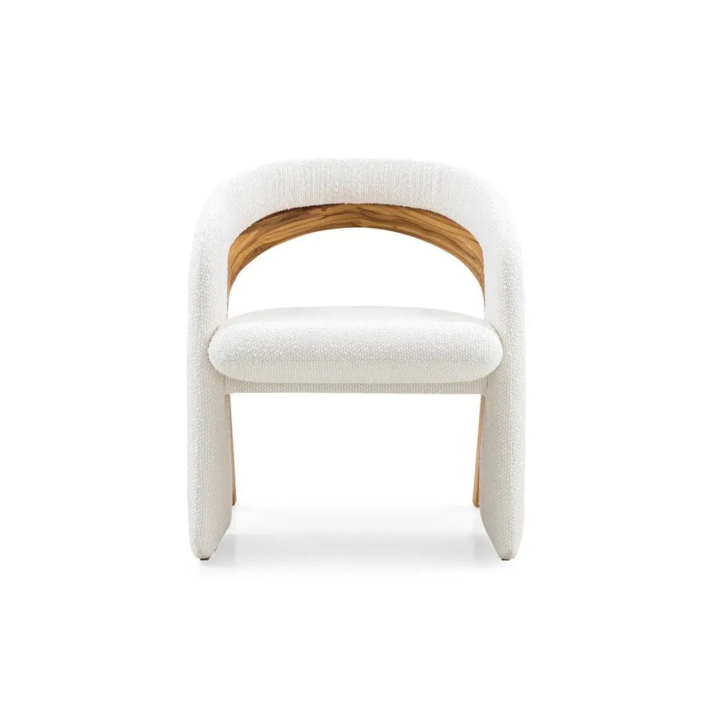 Teak Dining Chair With White Bouclé Upholstery And Open-Back Design – Olga Line