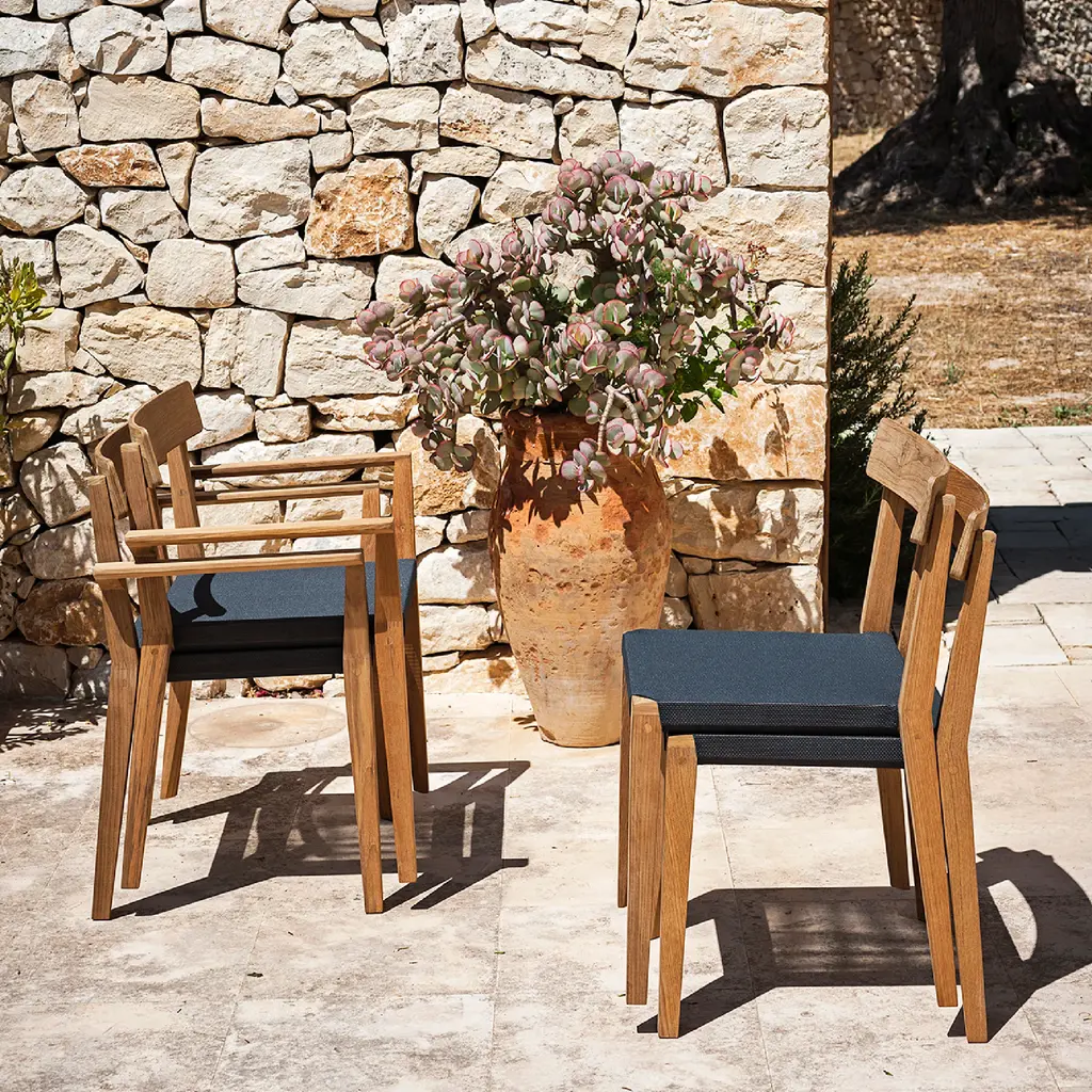 Indulge in the luxury of TEKA outdoor furniture, crafted with the finest teak wood for its durability and versatility. Designed by Gordon Guillaumier, each piece features a striking prism-shaped construction, imbuing a sense of lightness and sophistication. Complete your outdoor oasis with TEKA's stoneware slate tables, available in elegant natural tones.