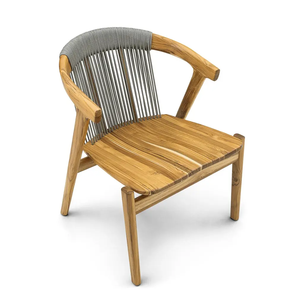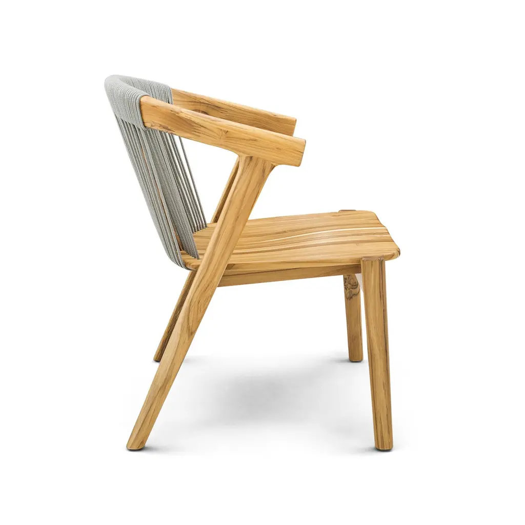 Teak Outdoor Dining Chair With Silver Rope Back, Vine Collection