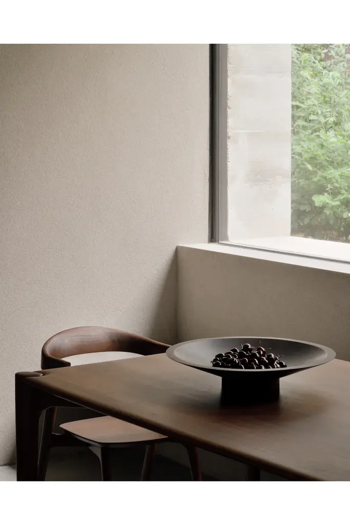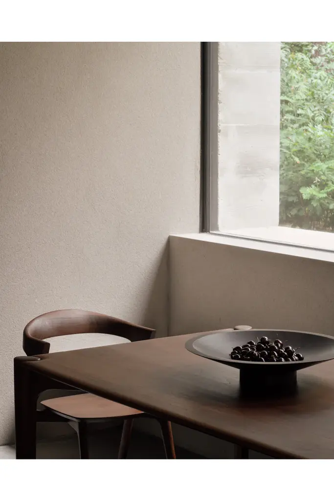 A versatile addition to any home, the Teak Round Back Dining Chair by Ethnicraft infuses a space with a sense of organic charm. This Bok dining chair exudes a sense of grace and lightness. Celebrating the innate beauty of natural materials, this solid teak chair remains unvarnished and untouched by any protective treatments, accentuating its raw and organic charm.