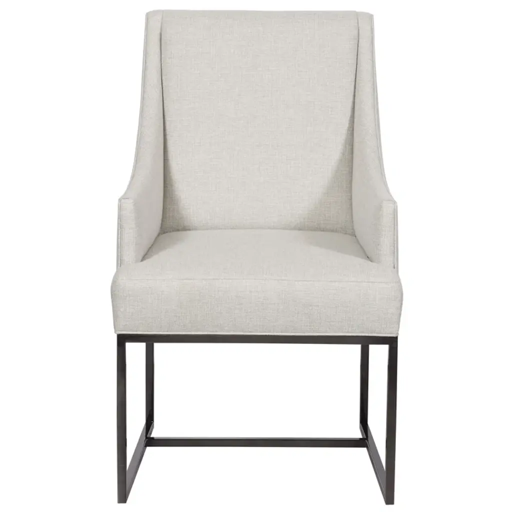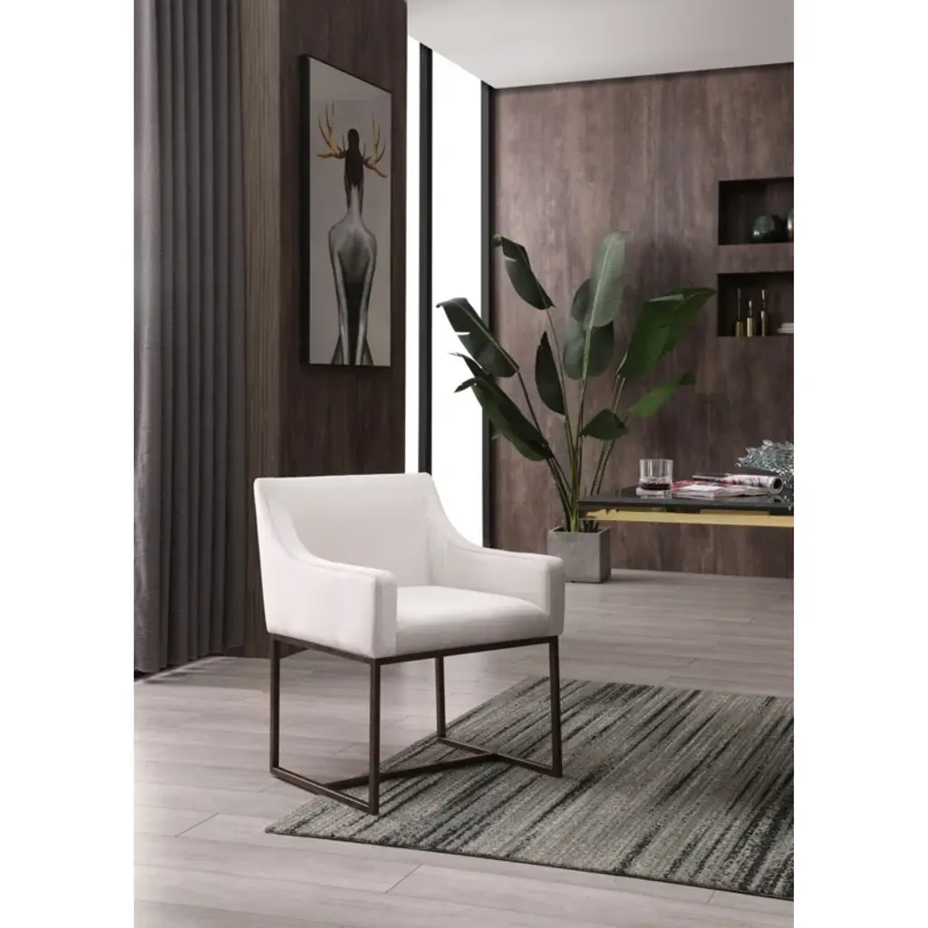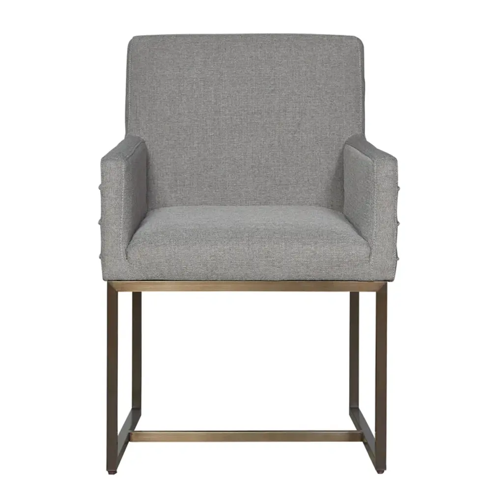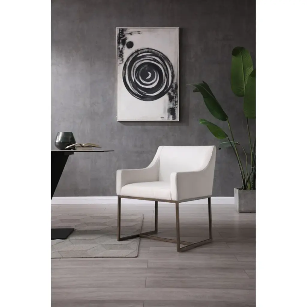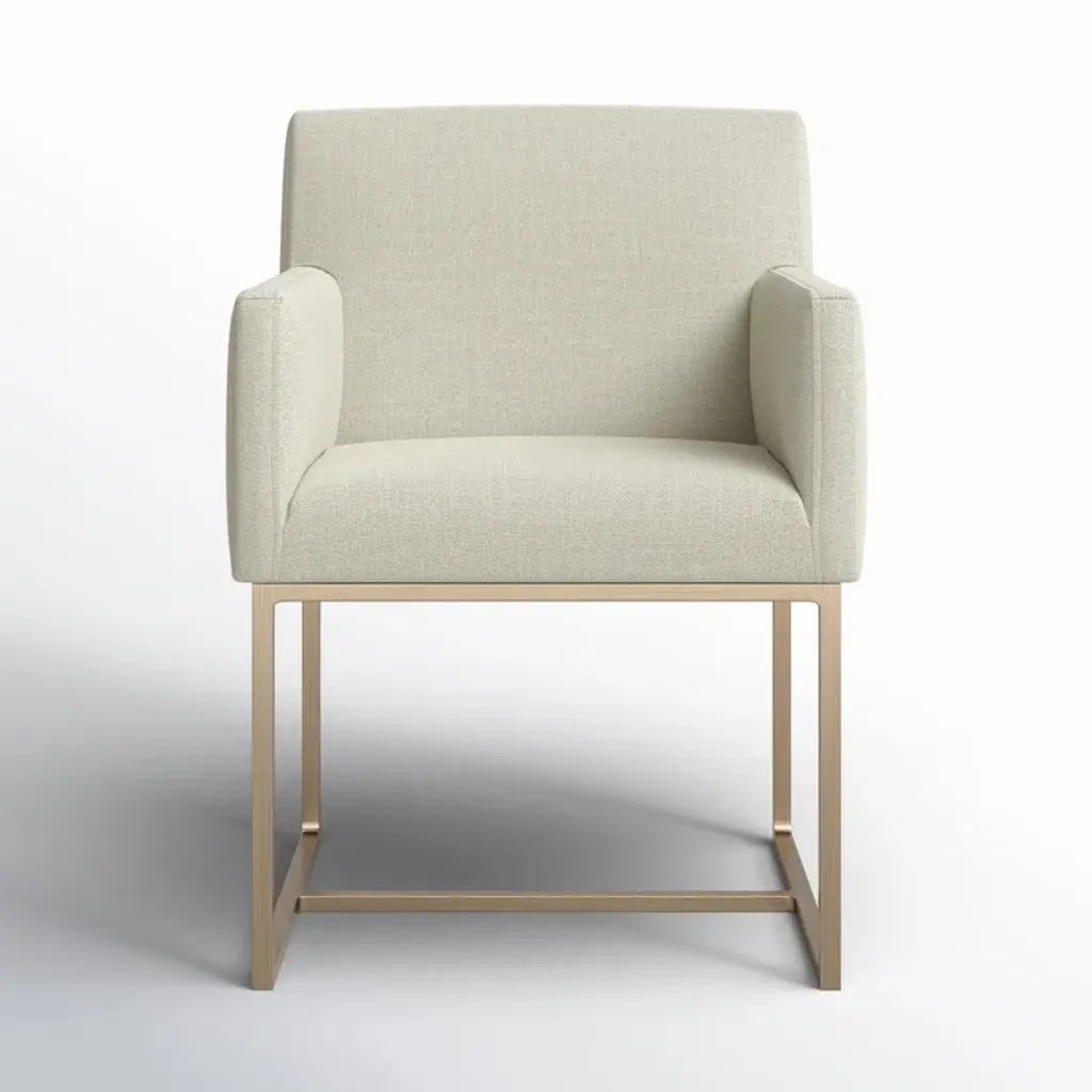 Bold and super elegant, the white velvet antique brass dining chair is a unique dining chair that will bring retro-modern charm into your dining room. With its perfect backrest height, sloped armrests, and covered in stain-resistant velvet over a layer of dense foam padding it offers a premium seating experience. The sturdy metal base comes in an elegant brushed brass finish.