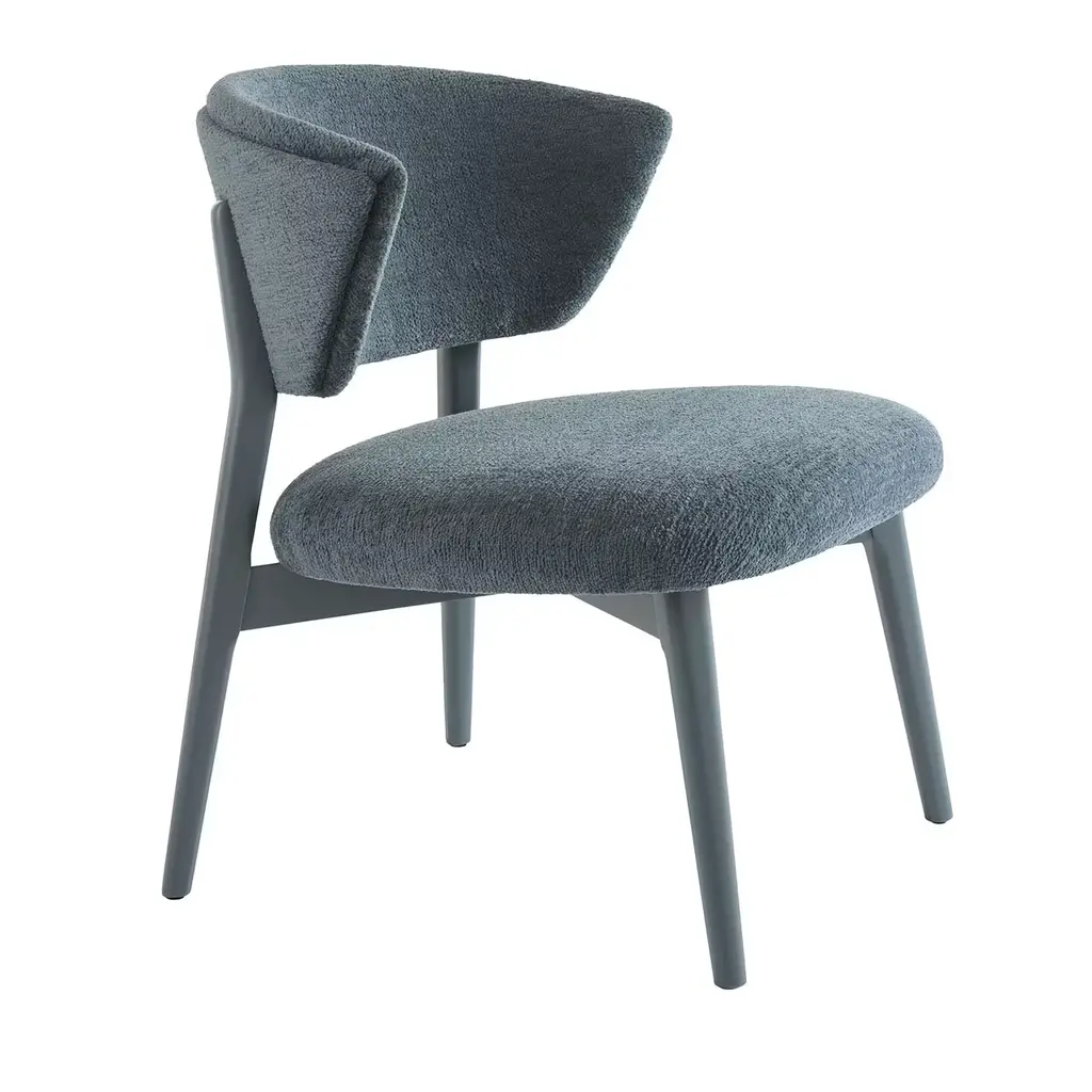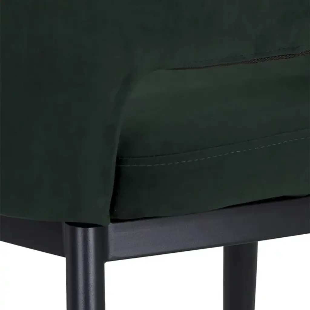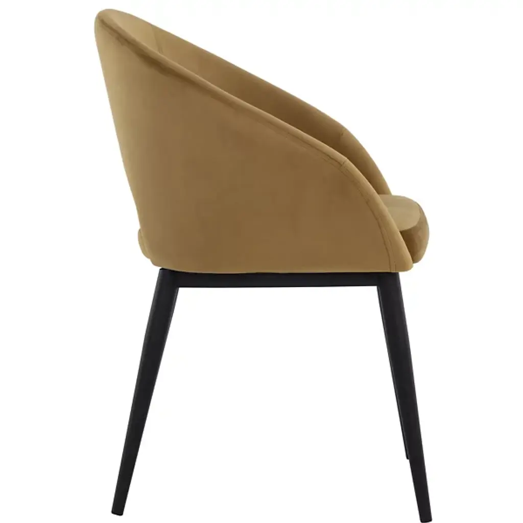 The Thatcher Dining Armchair from Sunpan offers a restrained, retro-modern refinement to inside gathering spaces. Ascending from an angular assembly of four telescoping legs, its powder-coated steel base adds both direct, robust strength and an airy refinement. A compact design with a curving barrel-style back arc around the plush seat, each upholstered in soft fabric, while a small relief cut just below the seat back adds airflow and a touch of sculptural refinement.