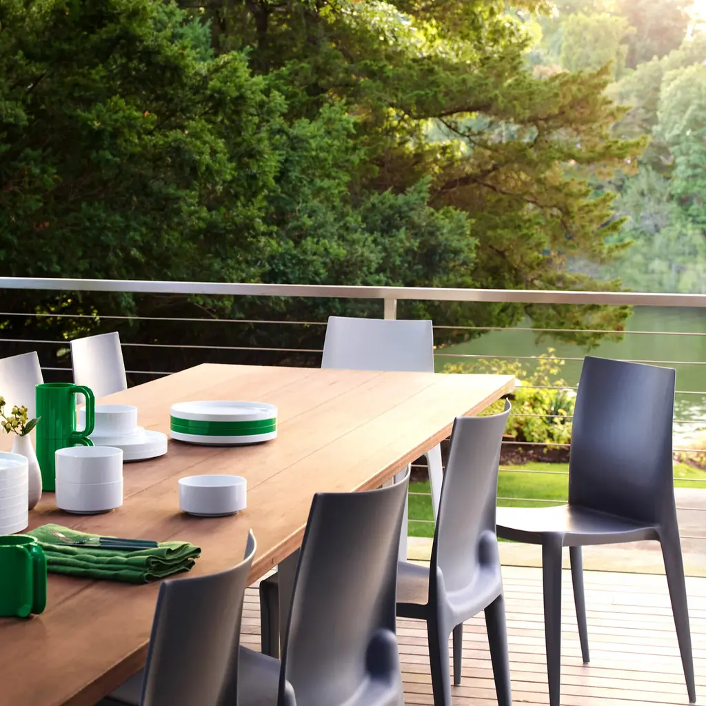Designed by the versatile architect Mario Bellini, the Bellini Chair from Heller is a truly versatile dining chair with unlimited uses. An injection molded stackable design ideal for spaces both indoors and out, the flexing action of the back provides unyielding comfort, while the lightly textured and easily washable surface adds a tactile touch. Crafted in the United States, these fully chairs are fully recyclable at the end of their life cycle.Highlights