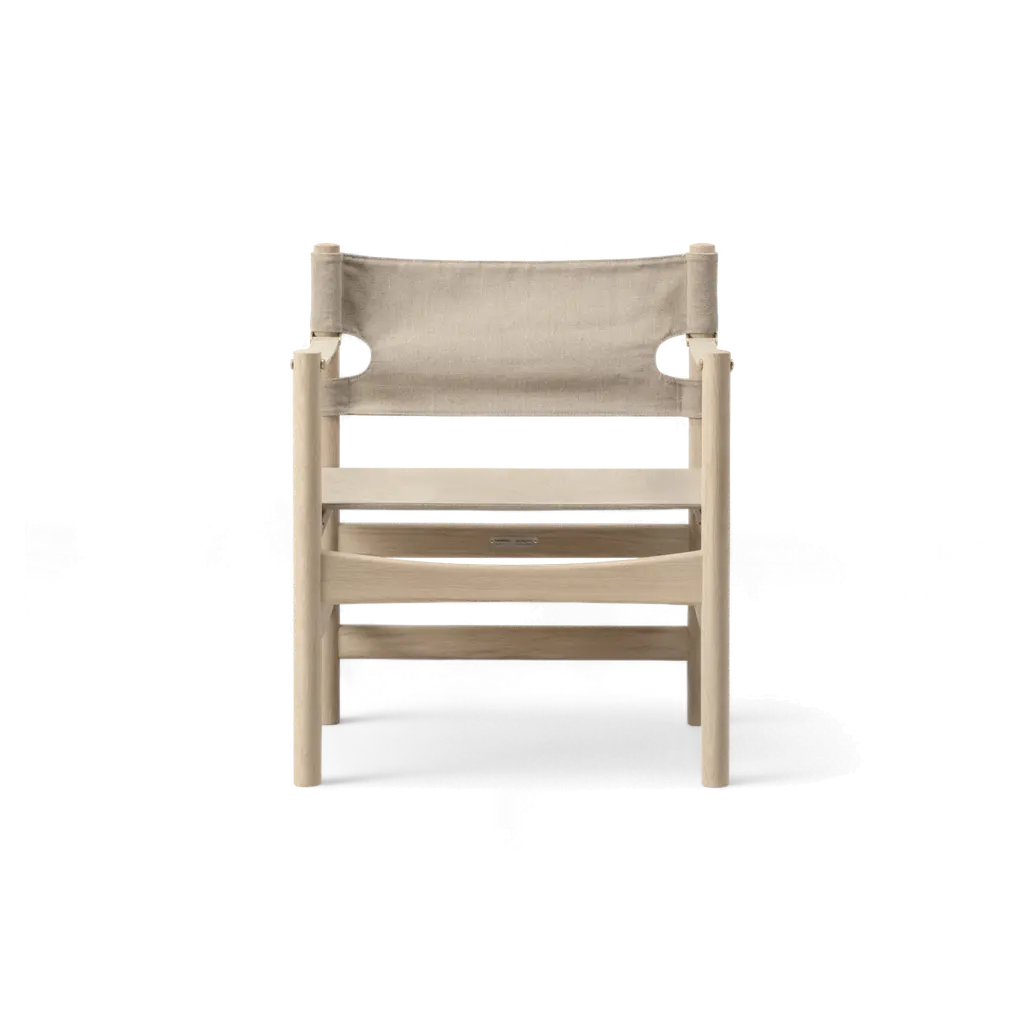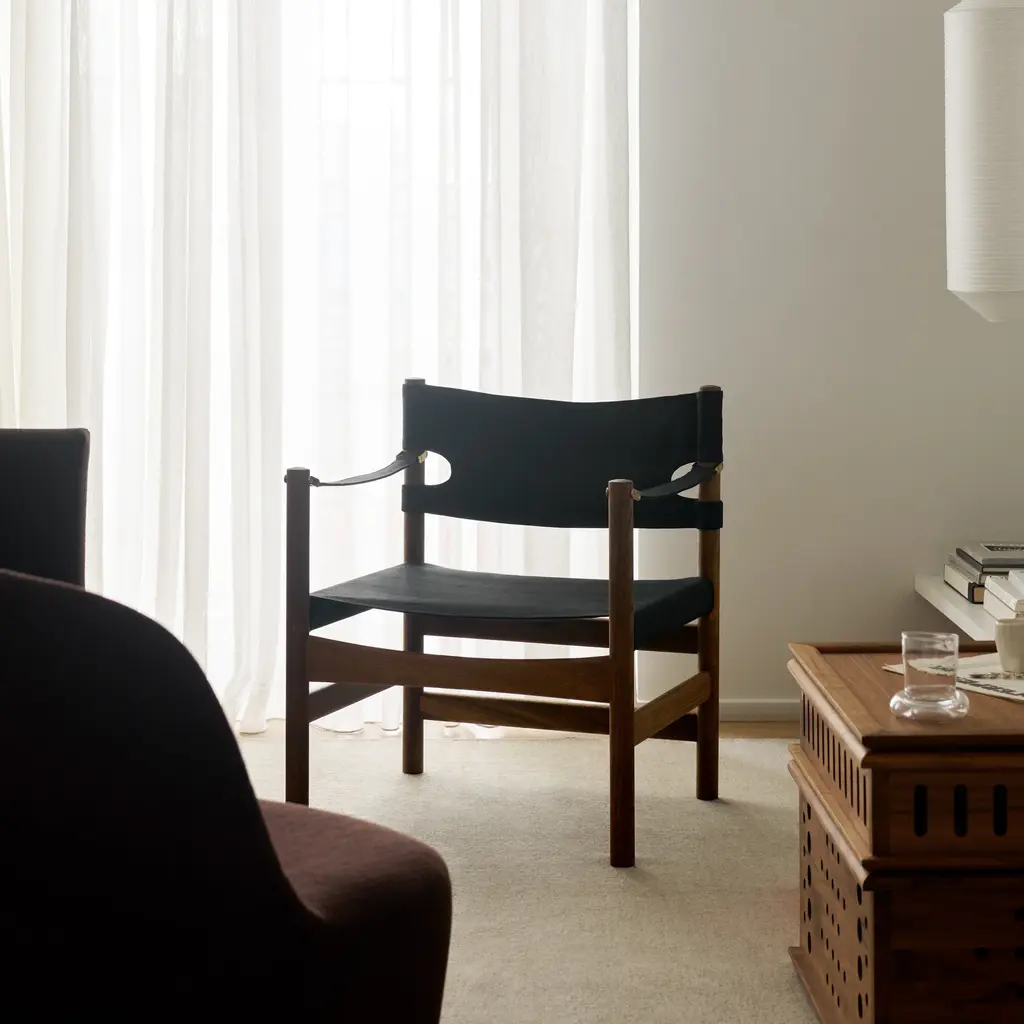 The Canvas 21 Chair, designed by Børge Mogensen for Fredericia Furniture in 1968, blends timeless elegance with relaxed simplicity. Crafted from FSC-certified solid wood and tactile canvas, it features refined brass details that age gracefully. With its clean lines and honest construction, this versatile chair adds a sophisticated touch to any interior while offering enduring comfort and style. Highlights