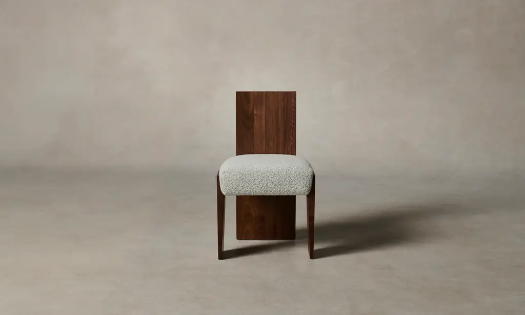 Strong and sophisticated in form, the Garrett Dining Chair stands on monolithic legs that underscore the beauty of solid walnut or white oak. Its seat is masterfully tailored for a clean finish. Handcrafted in North Carolina.