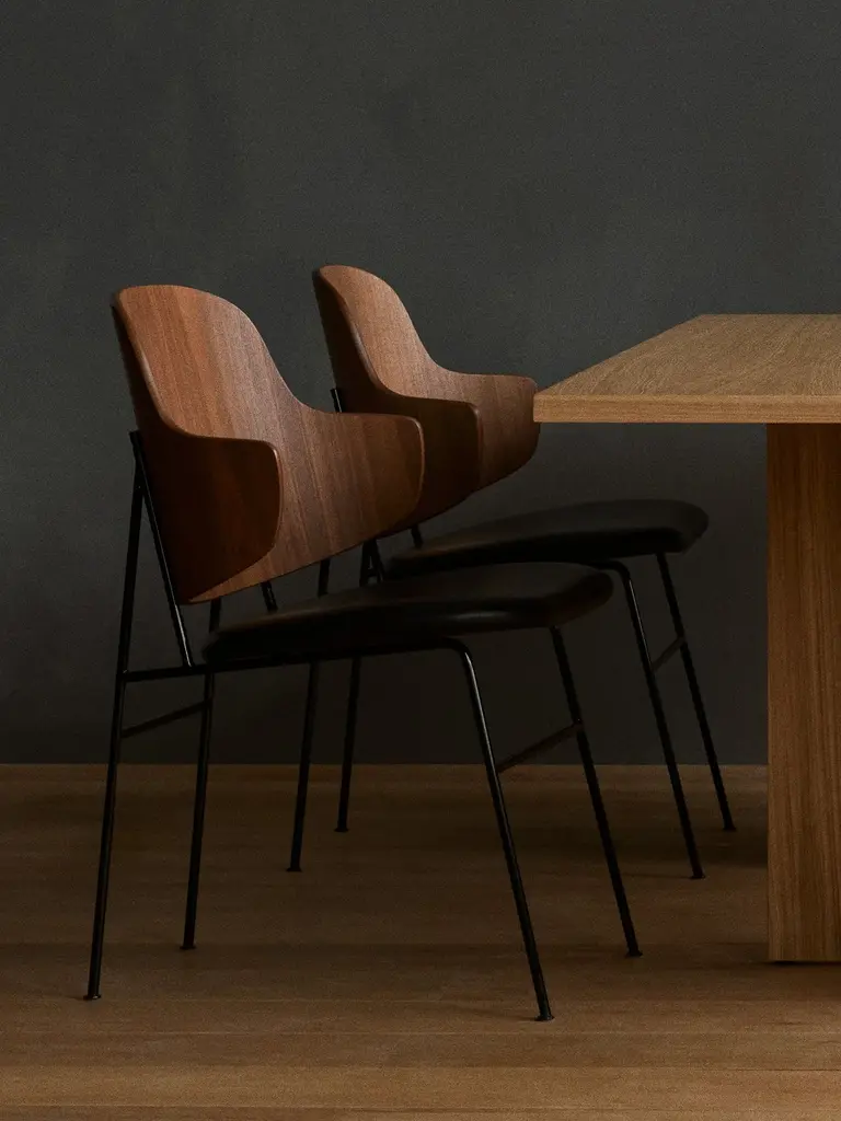 A mid-century bestseller from the hand of Ib Kofod-Larsen, The Penguin Dining Chair remains as popular today as when it was first introduced in 1953. Light and elegant with its curved wooden back and upholstered seat, it continues to offer unparalleled sitting comfort thanks to its considered combination of quality craftsmanship and premium materials.