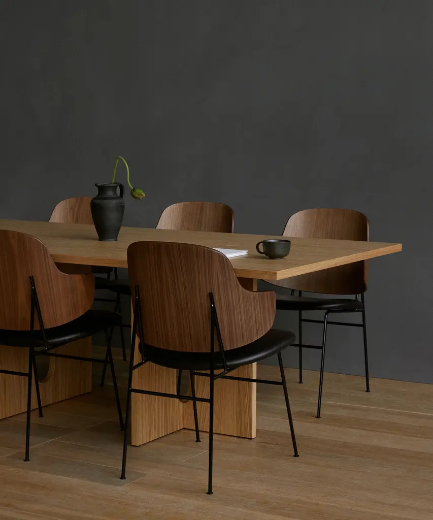The Penguin Dining Chair remains as popular today as when it was first introduced in 1953. Light and elegant with its curved wooden back and upholstered seat, it continues to offer unparalleled sitting comfort thanks to its considered combination of quality craftsmanship and premium materials. A mid-century bestseller from the hand of Ib Kofod-Larsen, Audo Copenhagen.